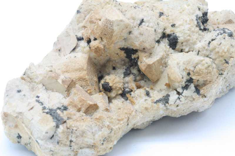 Very aesthetic specimen from Poland. Large beige orthoclase crystals with white albite crystals attached.