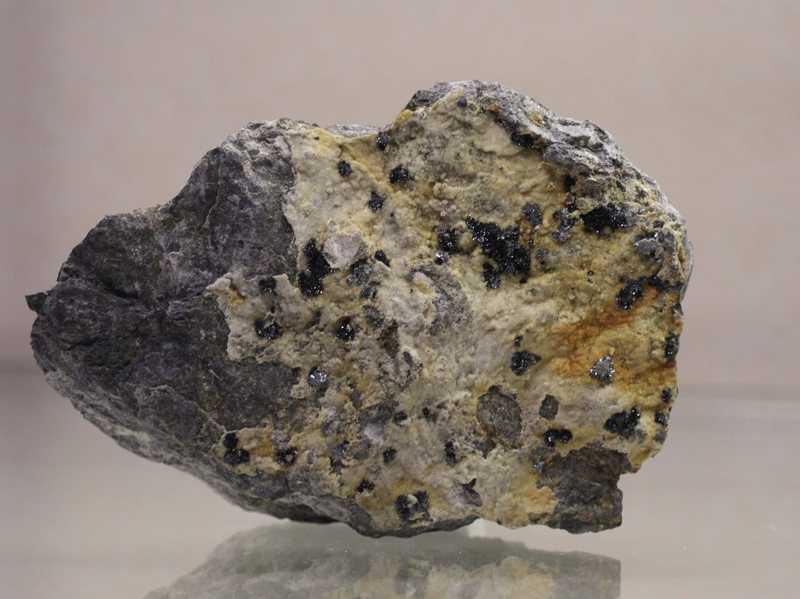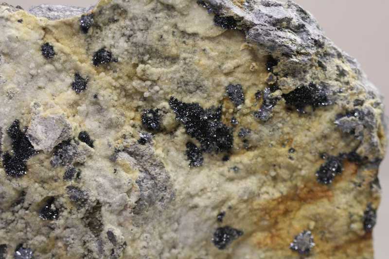Aesthetic large specimen of stibnite from the Pezinok locality. A very aesthetic specimen, where “hedgehogs” of shiny stibnite (approximately 1 cm in diameter) cover a light base of finely crystalline calcite. The specimen is covered with stibnite on both sides.