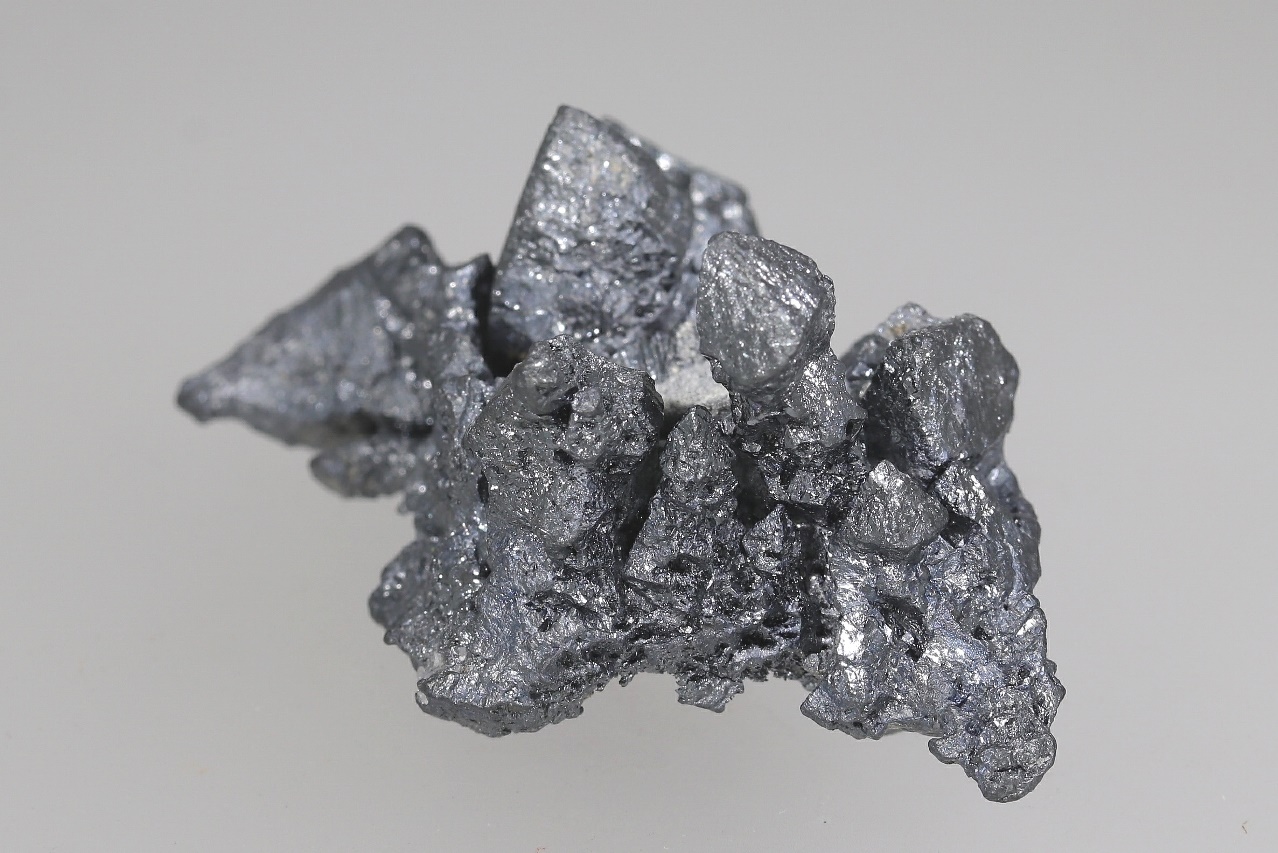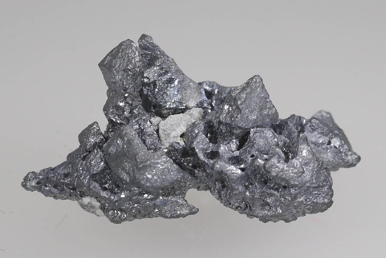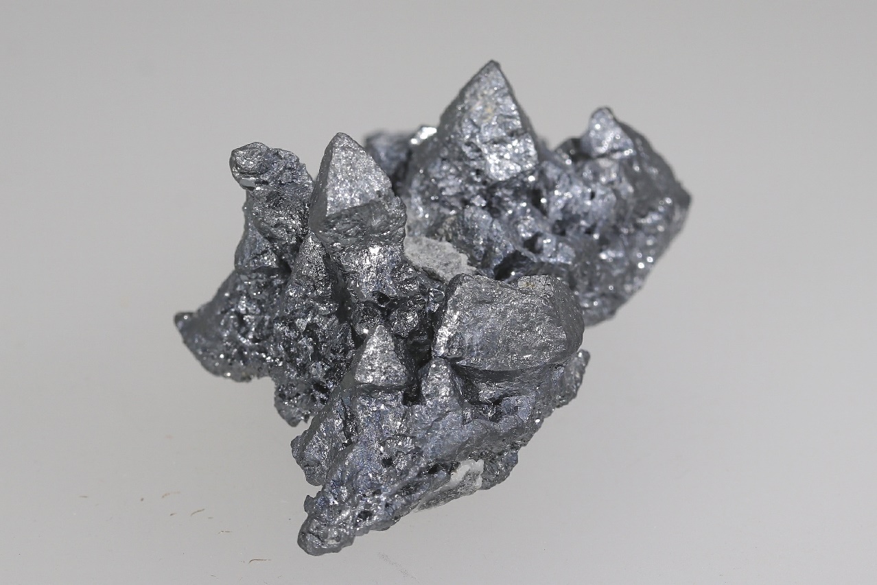 Beautiful cluster of pseudooctahedral, metallic-lustered acanthite crystals.