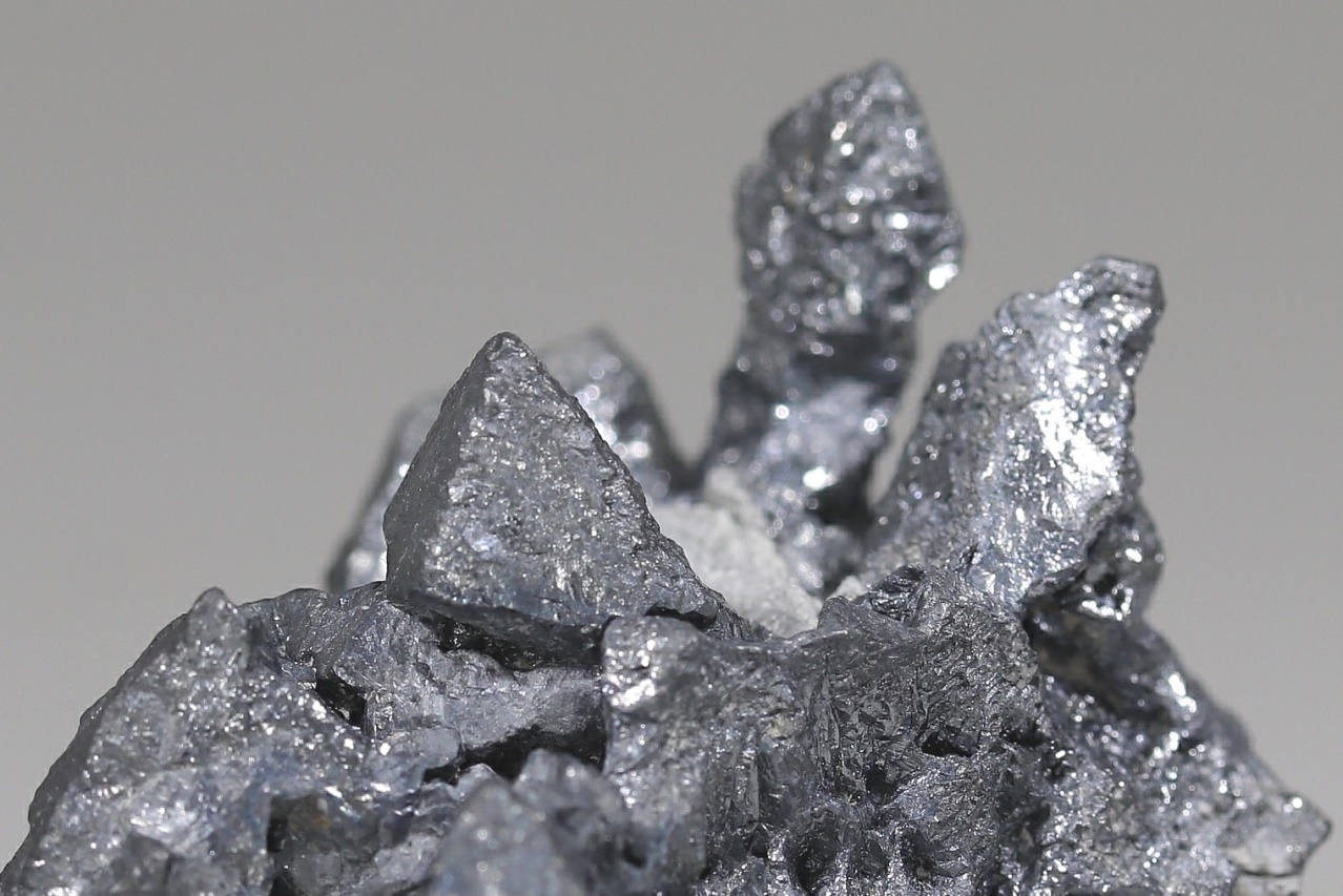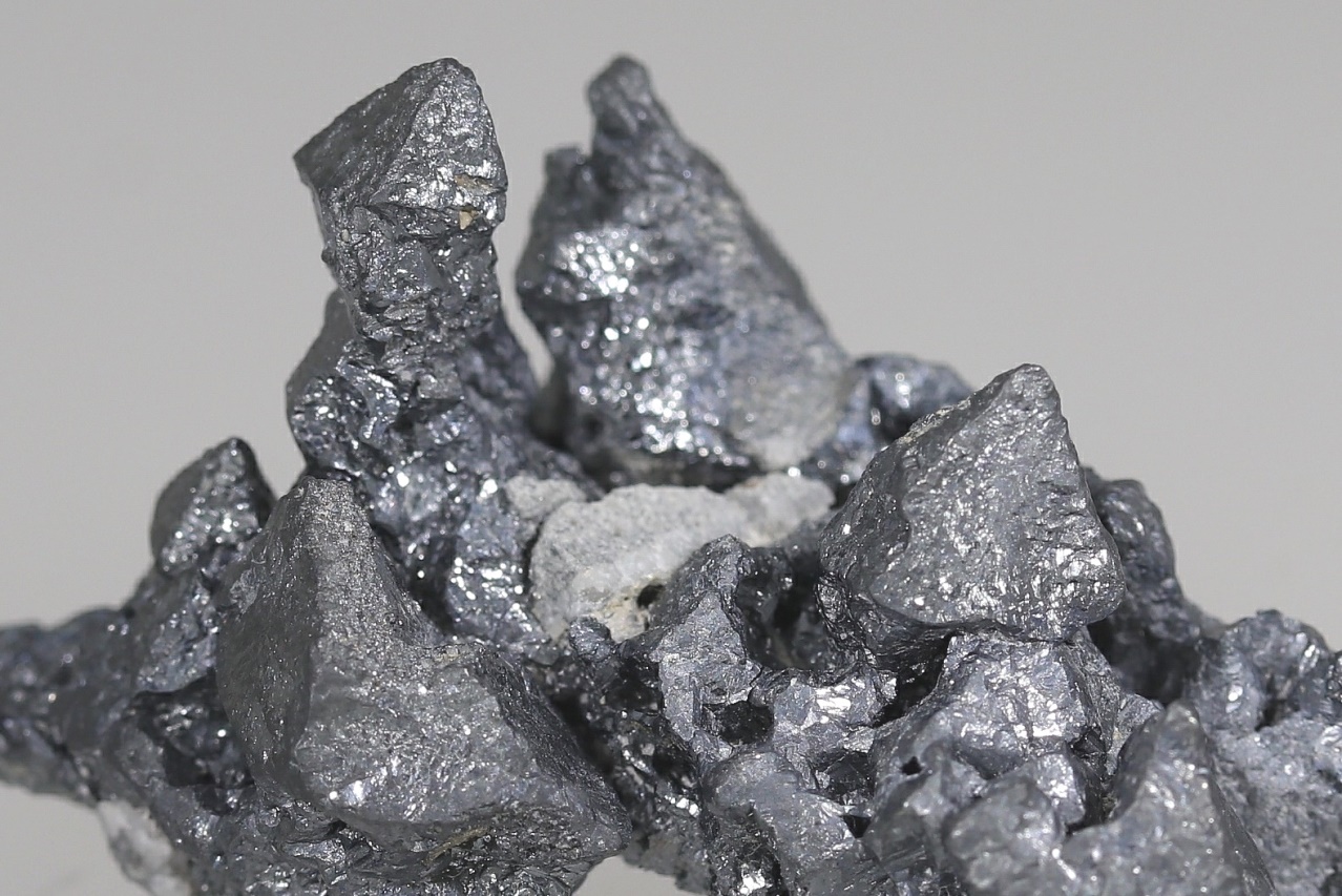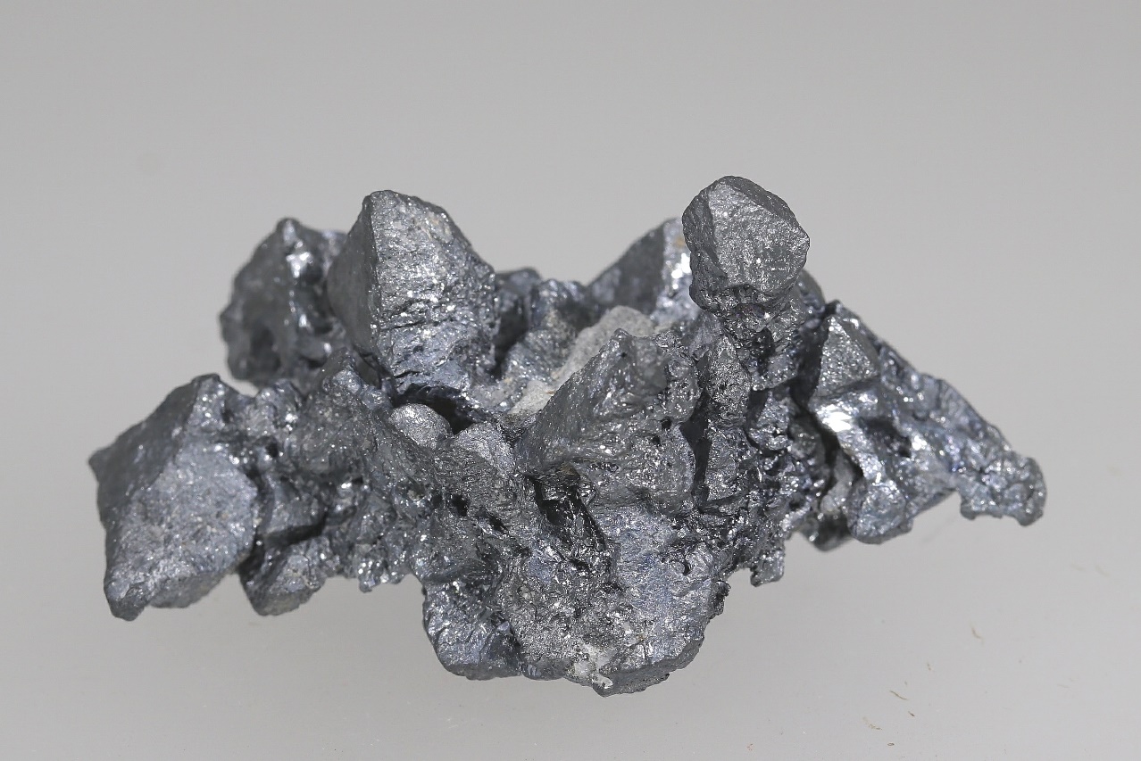 Beautiful cluster of pseudooctahedral, metallic-lustered acanthite crystals.