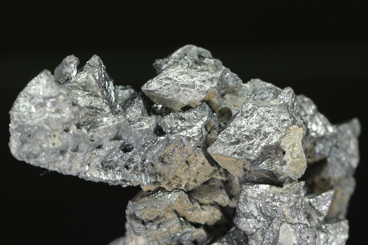 Hypoparallel cluster of metallic lustrous acanthite crystals.