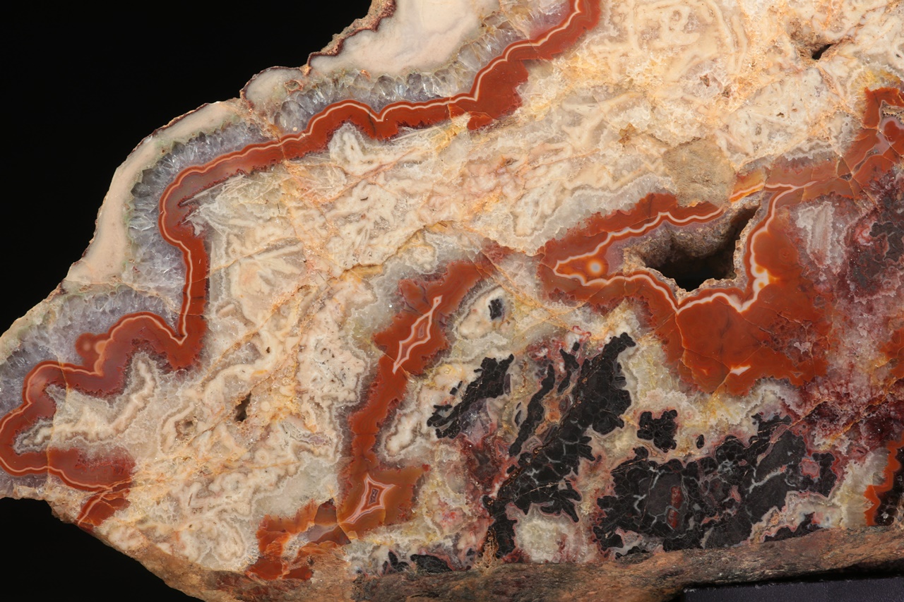 Nádherná, neobvykle velká ukázka achátu z vyhlášené krušnohorské lokality s typickou červenou linkou.