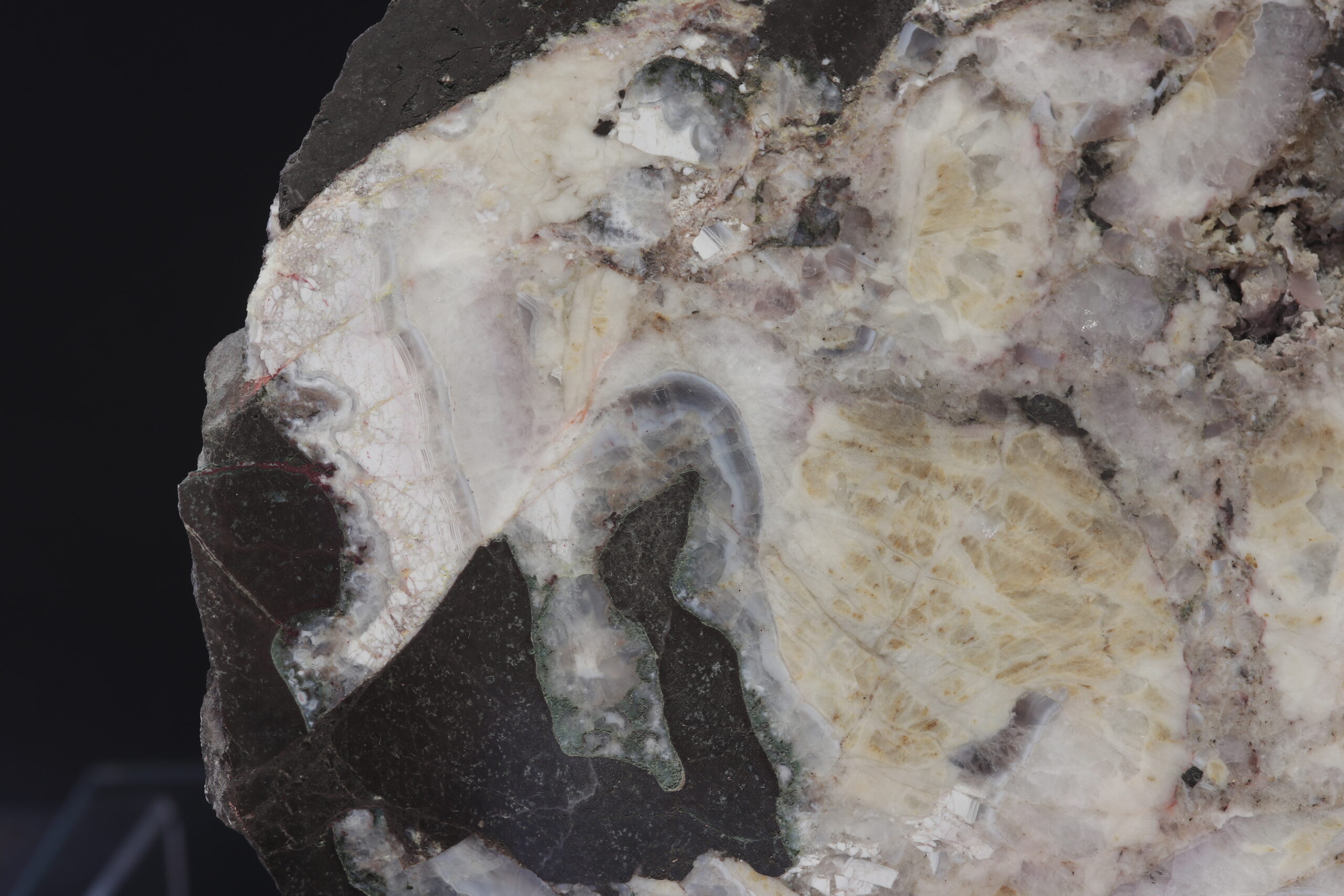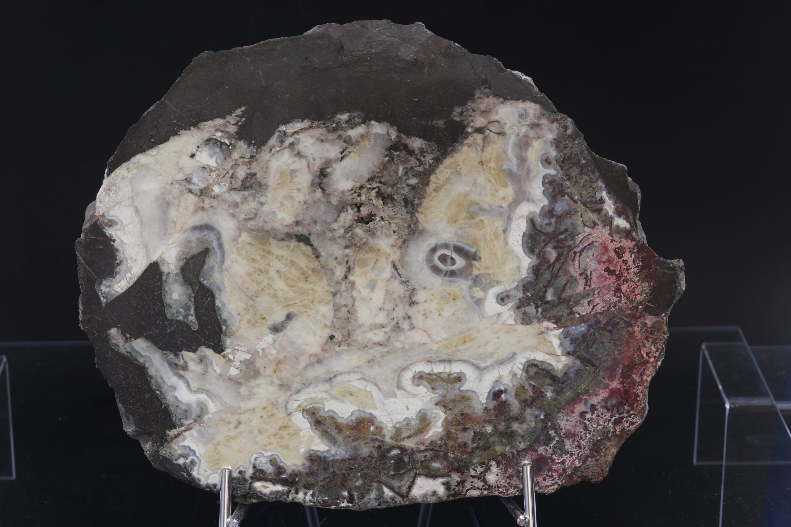 An exceptionally large agate from the Frýdštejn quarry. The sample is also very interesting from a geological point of view, as tectonic shifts can be observed in the sample.