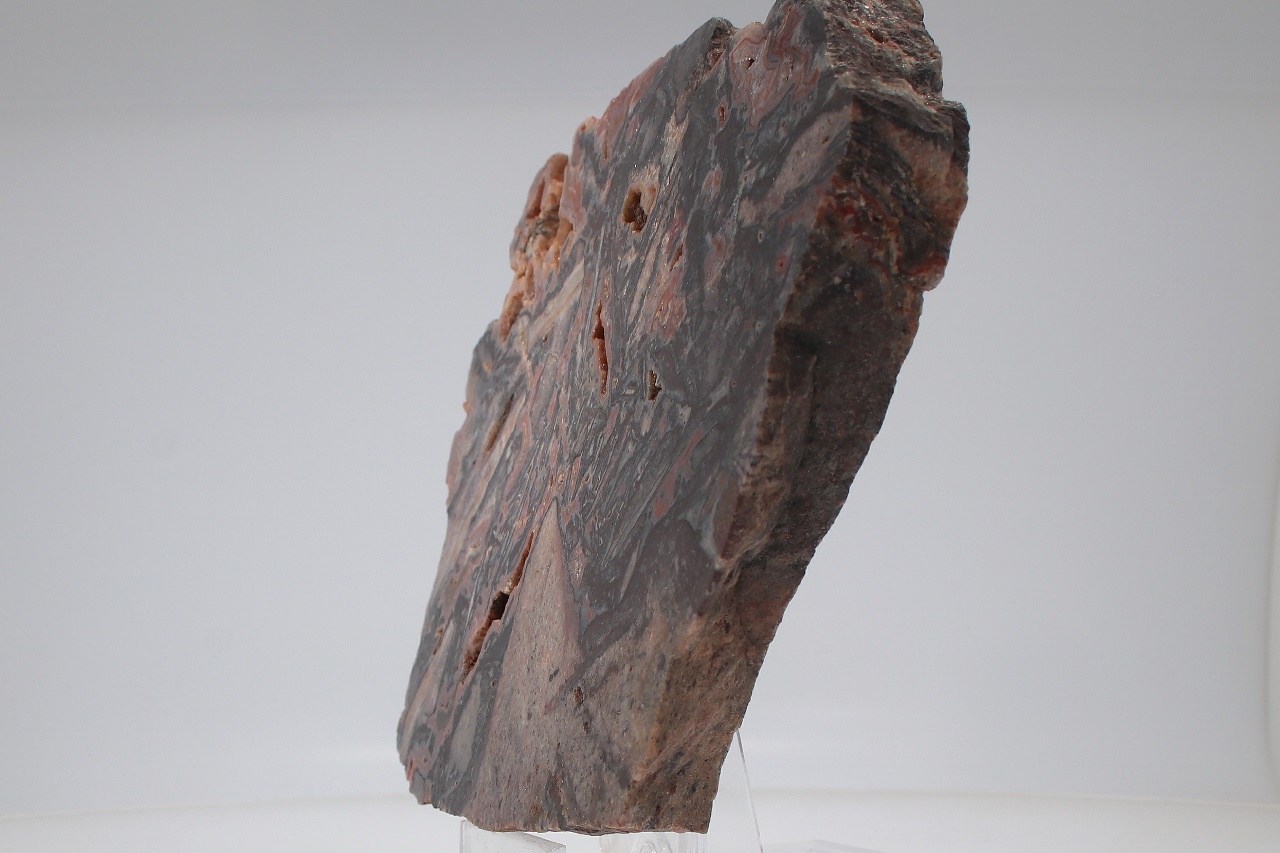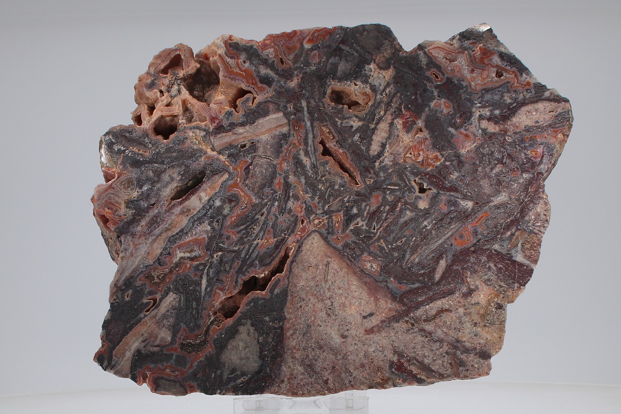 Polished agate with well-visible pseudomorphs after calcite and barite.