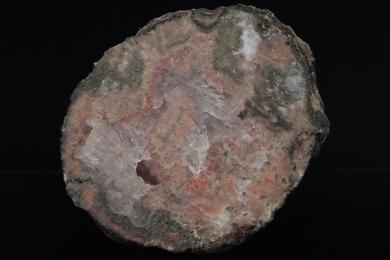 Extraordinary large agate from the Frýdštejn quarry with a 1.5 cm cavity with slightly purple-tinged quartz crystals.