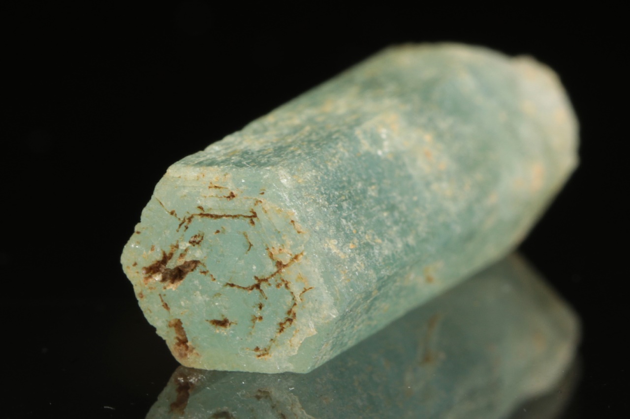 A translucent crystal of the blue variety of beryl – aquamarine. The crystal is terminated on the top by a base.