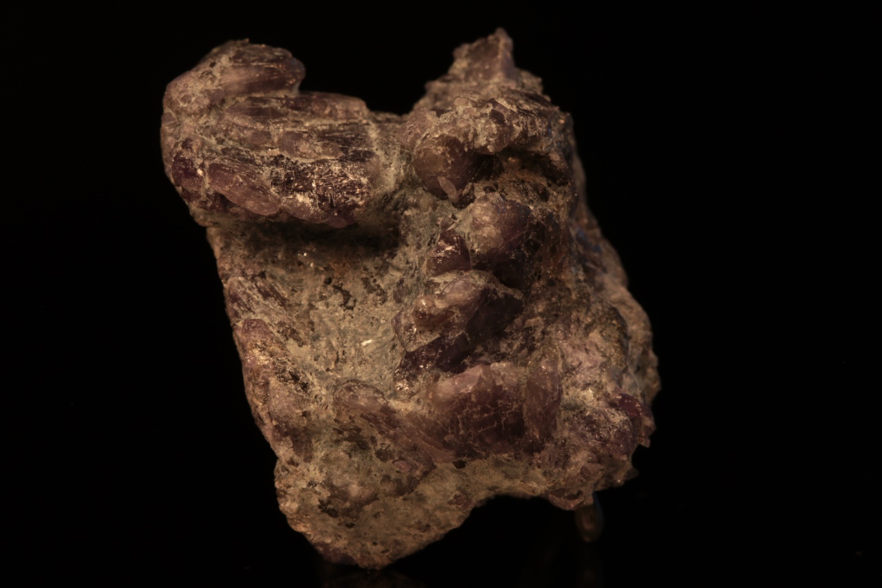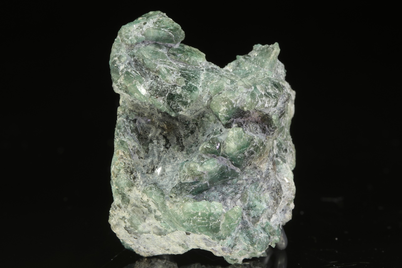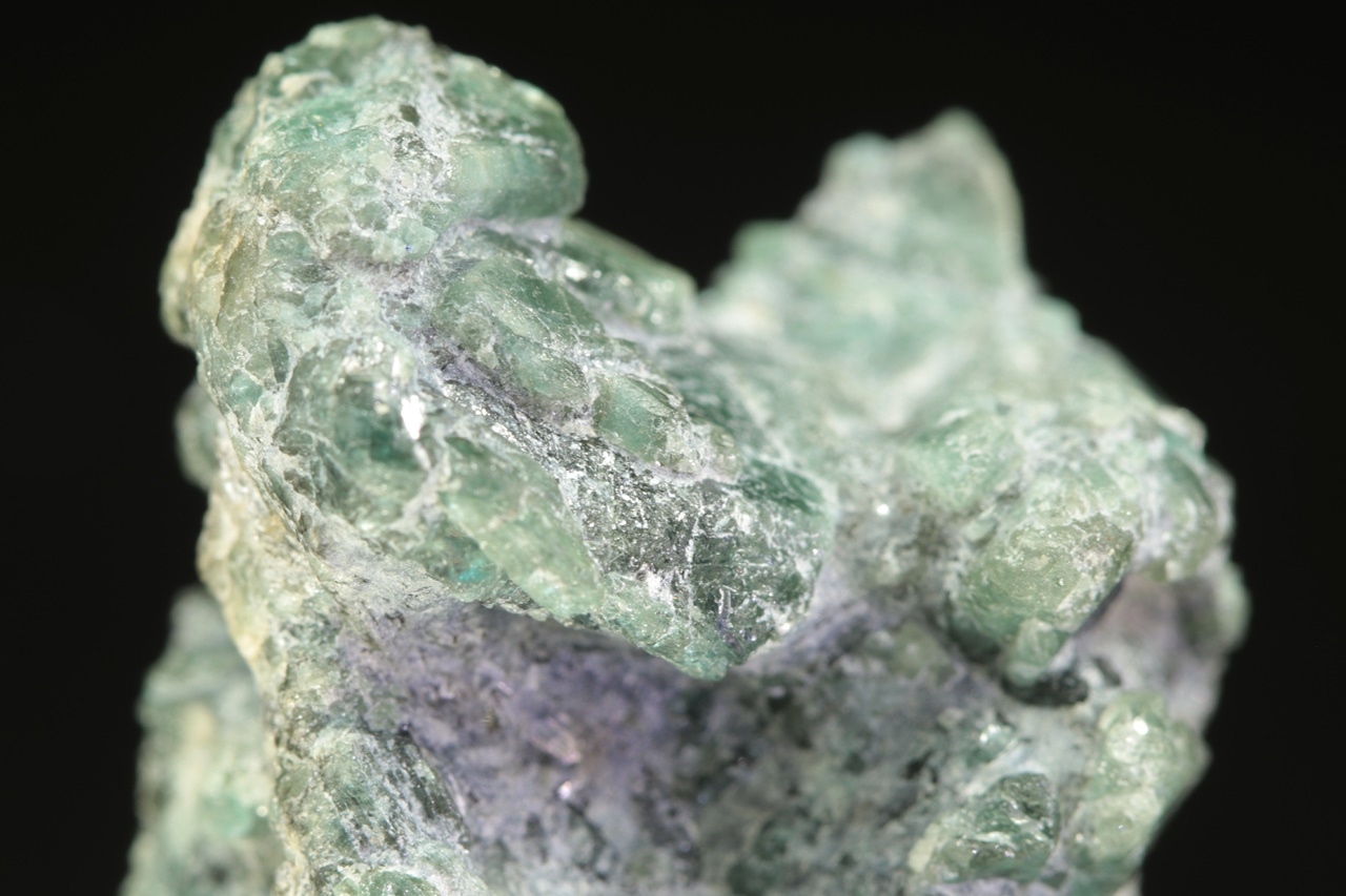 Cluster of green alexandrite crystals which exhibit color change under the light of a bulb and transition to red color.