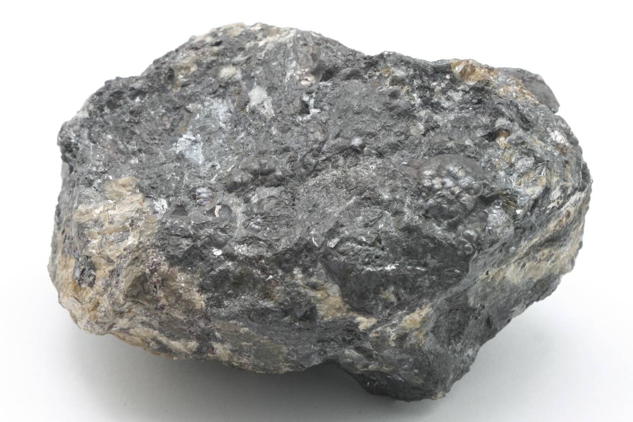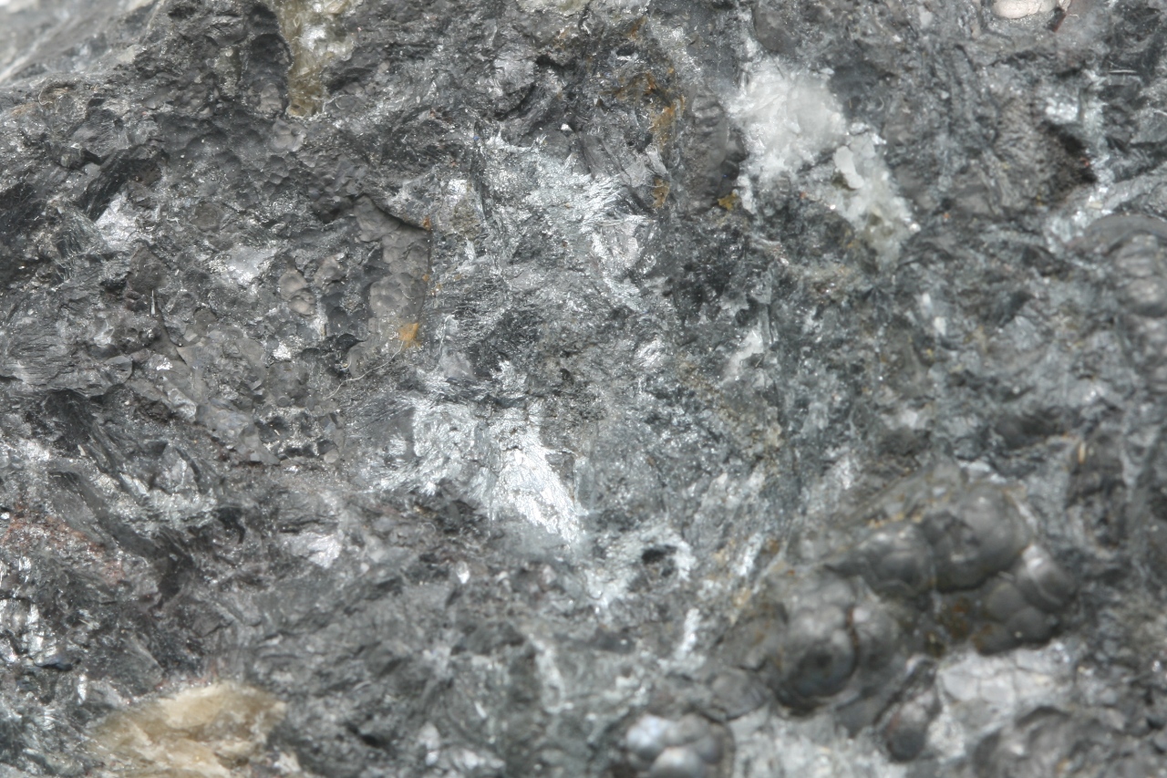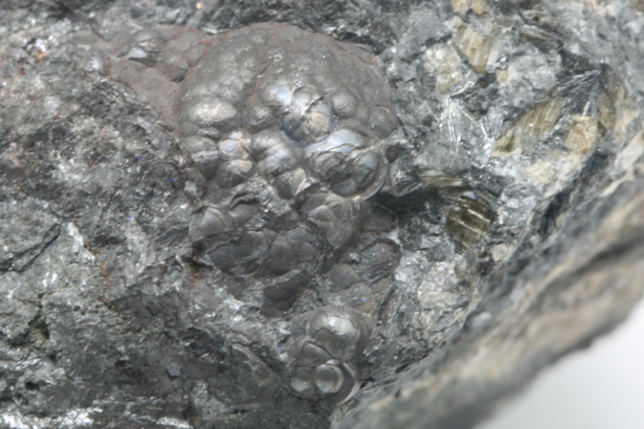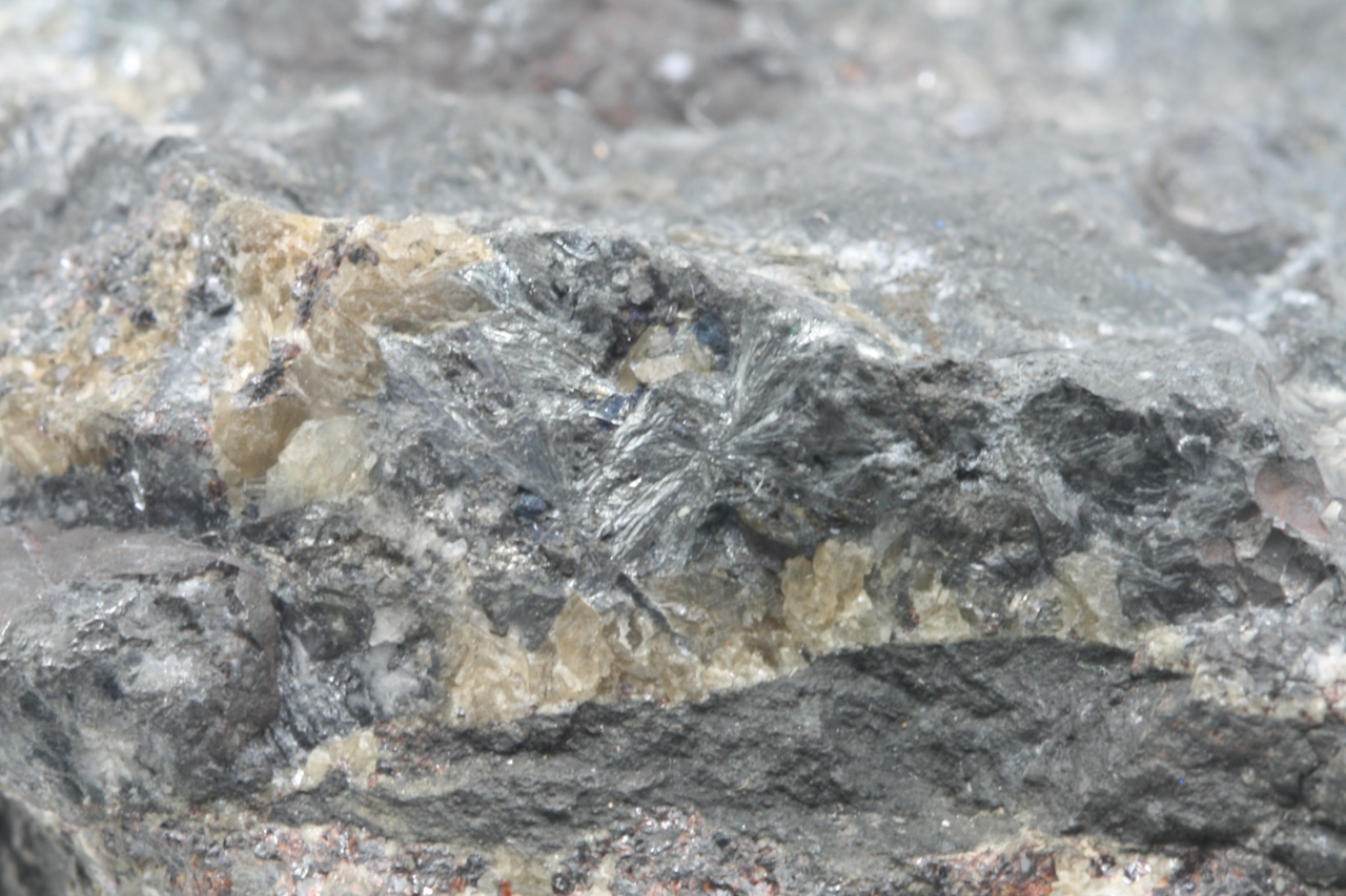 Historical sample of the Příbram vein. Star-shaped aggregates of antimonite embedded in kidney-shaped antimony.