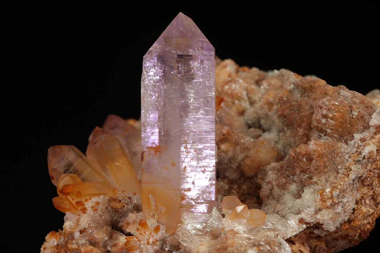 Beautiful crystals of light purple amethyst. The lightest crystal is 5 cm large.