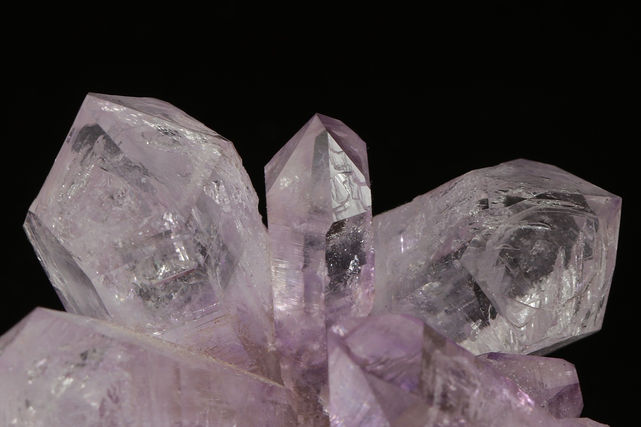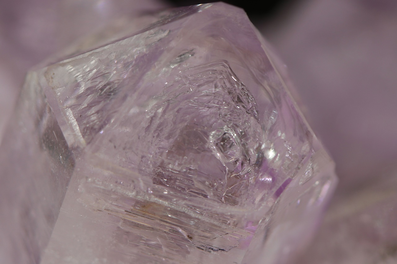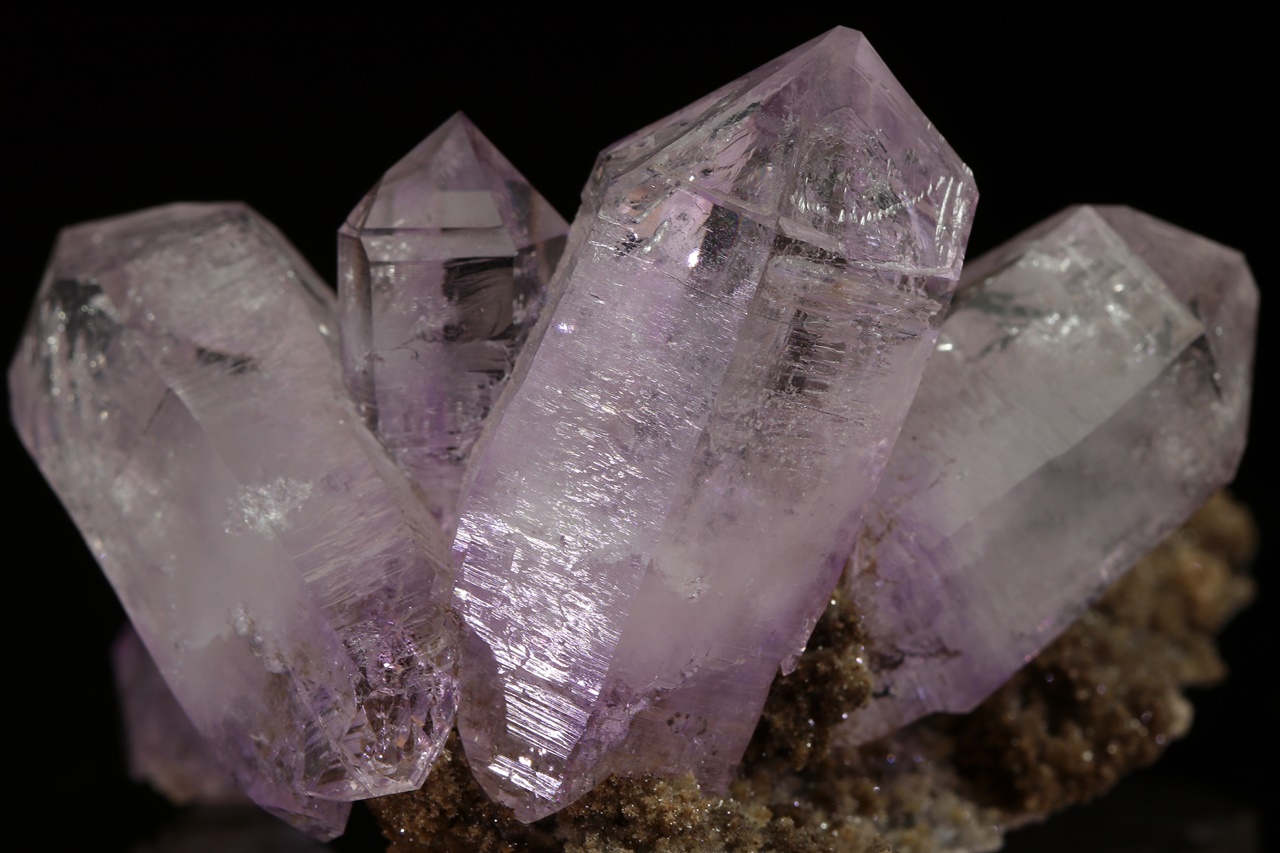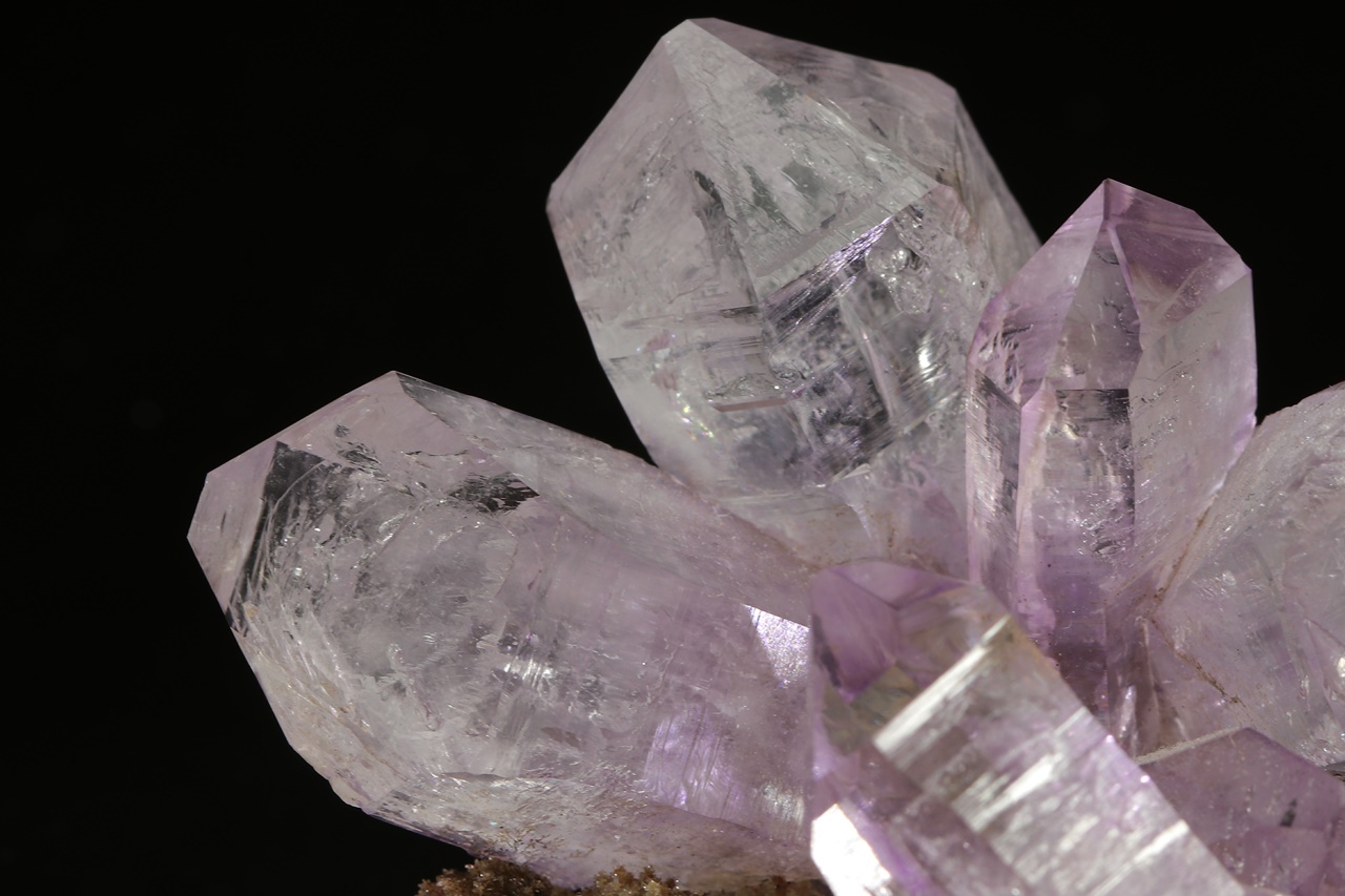 Purple amethyst crystals have grown on the base. One of the amethysts contains a Goethite inclusion. The largest crystal is 4.5 cm in size.