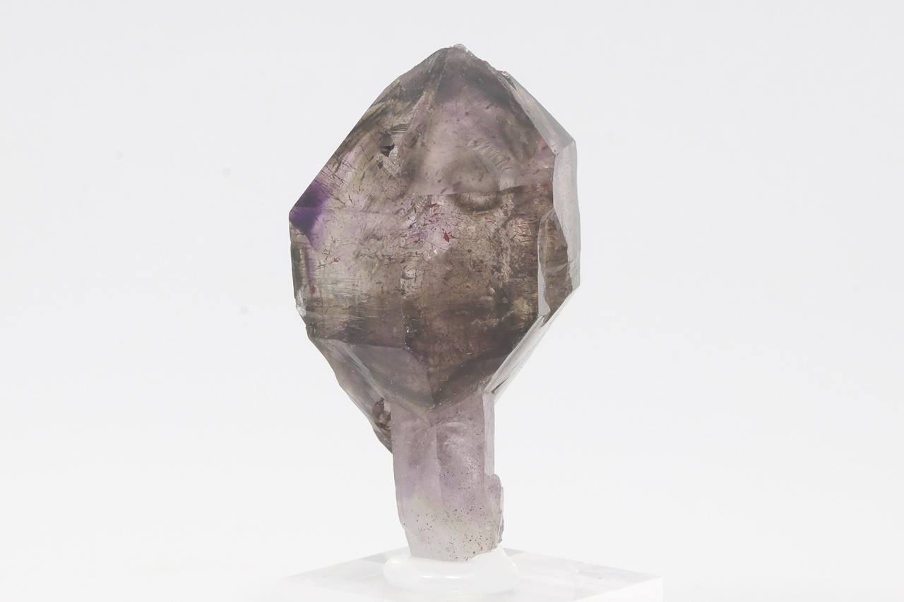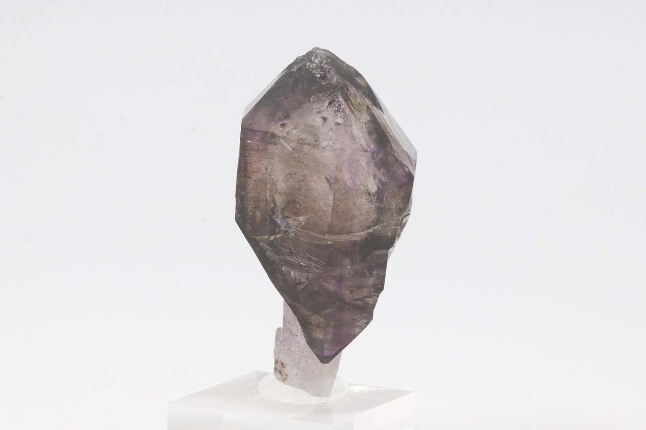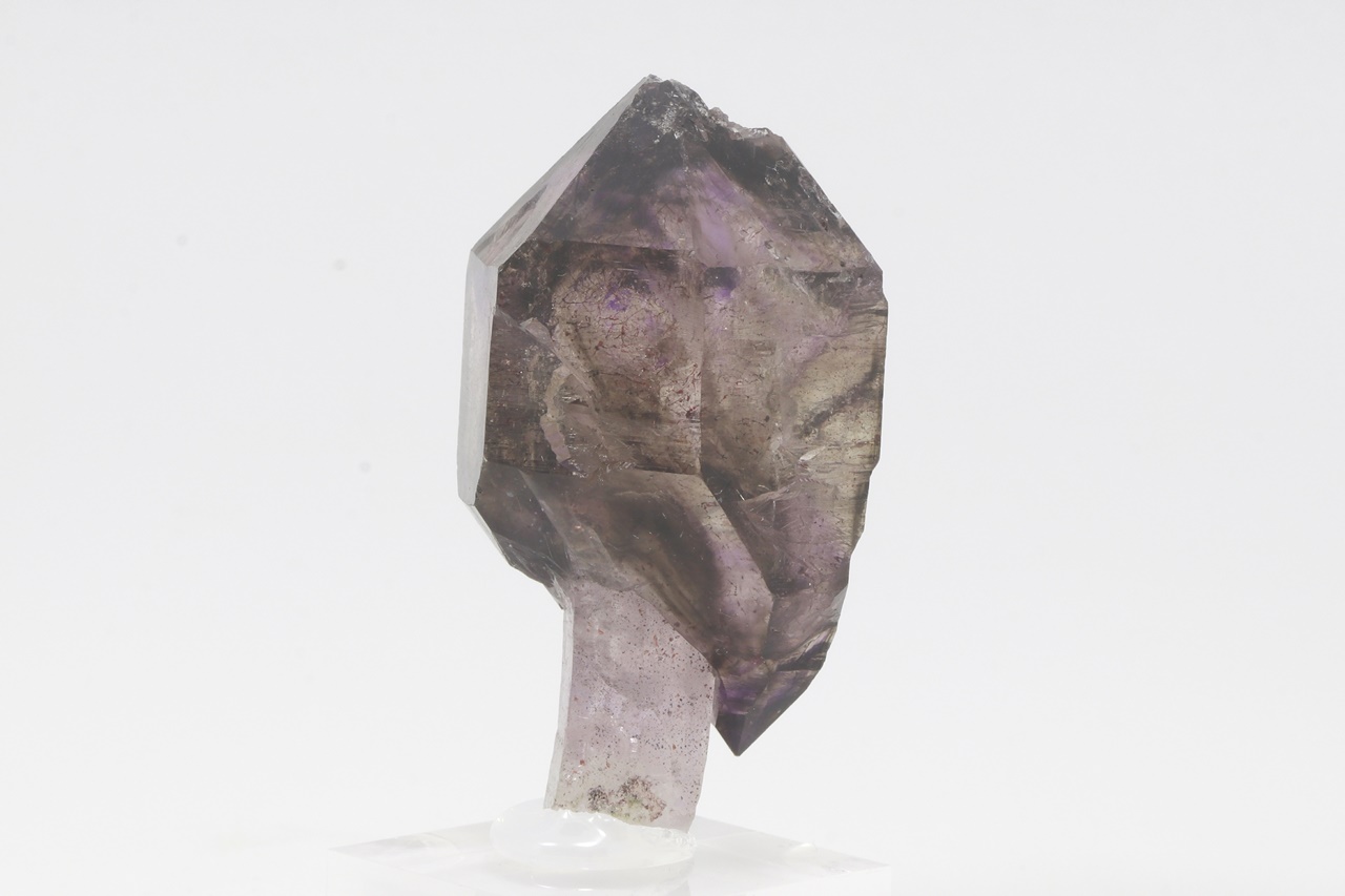 A beautiful specimen of scepter amethyst growing on a thin clear leg. The size of the scepter is 49 mm.