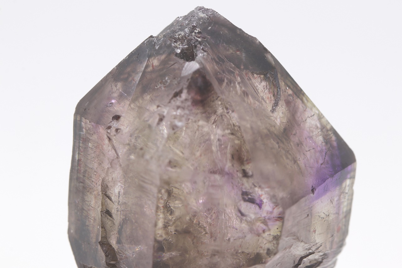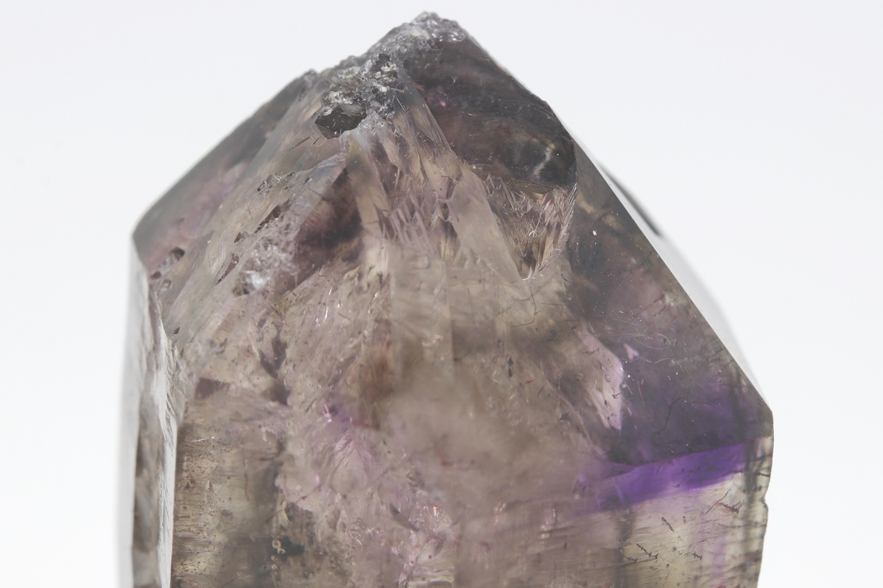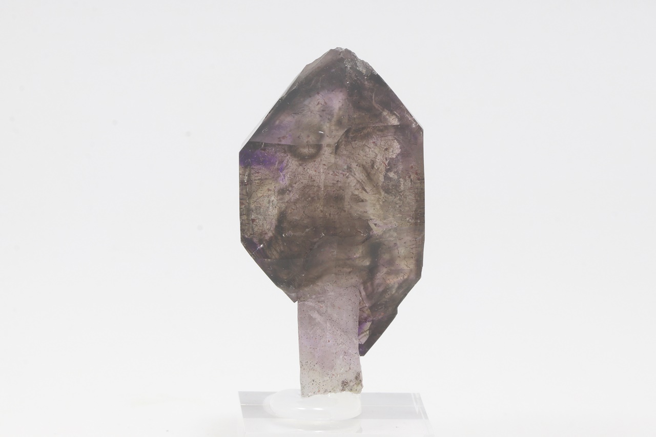 A beautiful specimen of scepter amethyst growing on a thin clear leg. The size of the scepter is 49 mm.