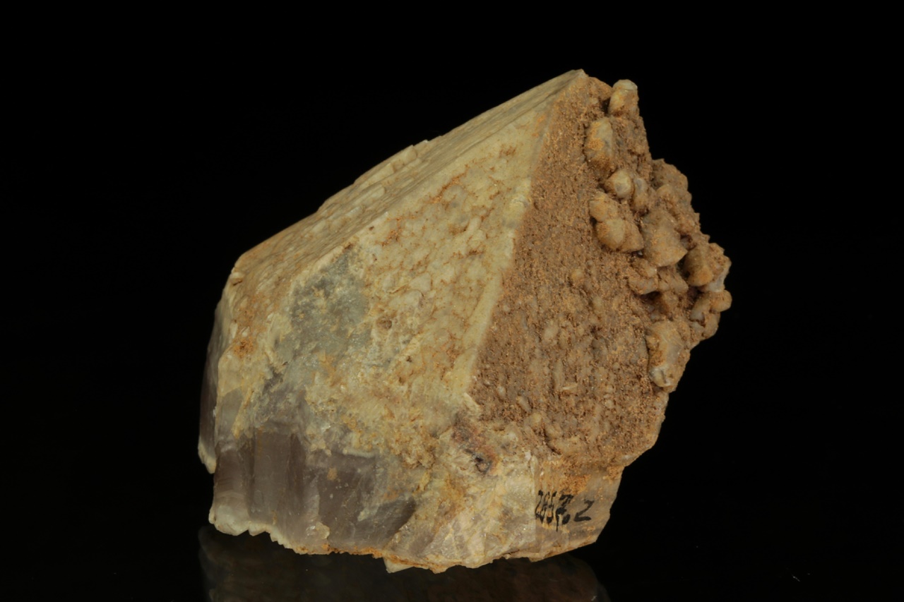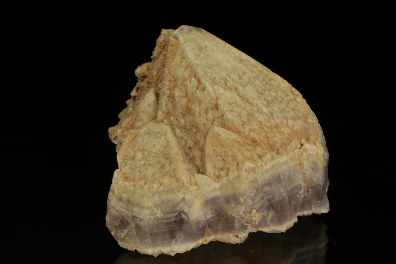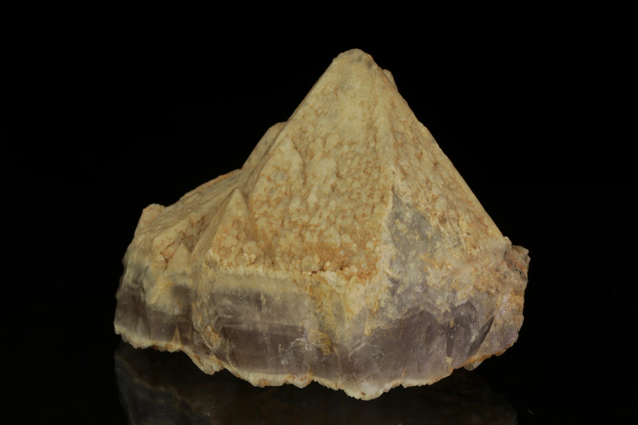 Crystal of amethyst from a well-known locality terminated with beige quartz. The crystal was naturally broken off from the lower part and healed with younger quartz.