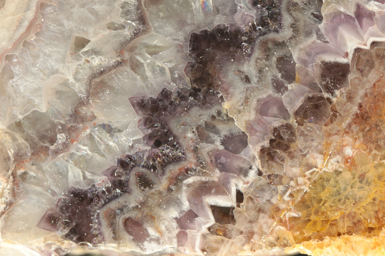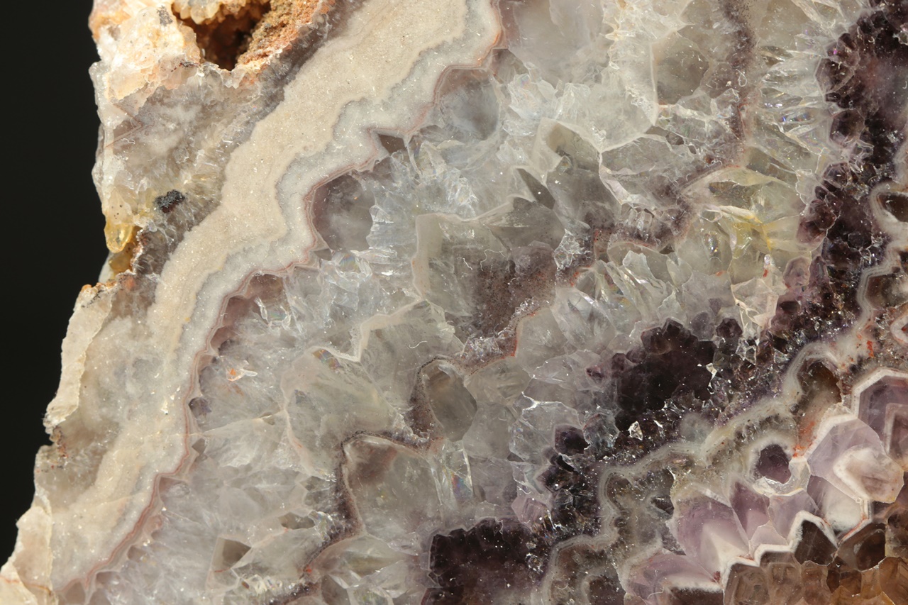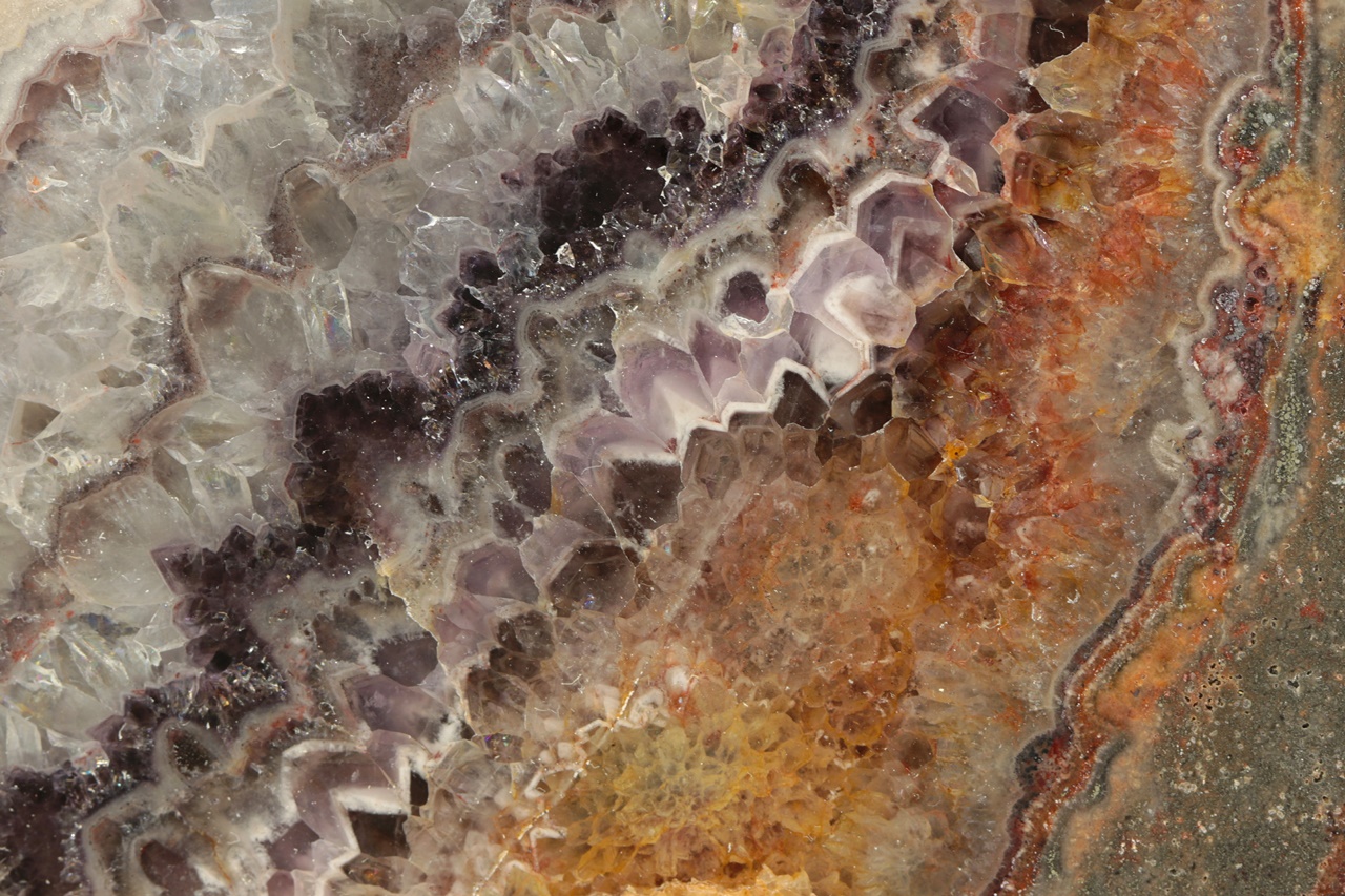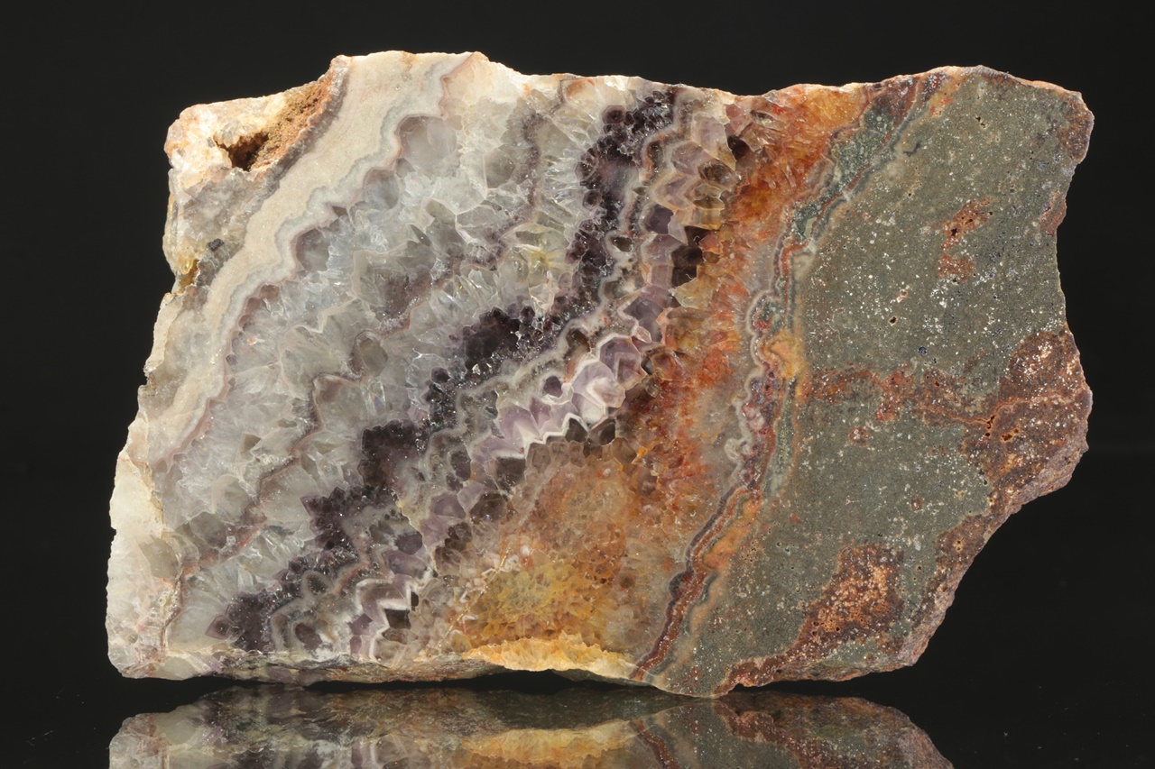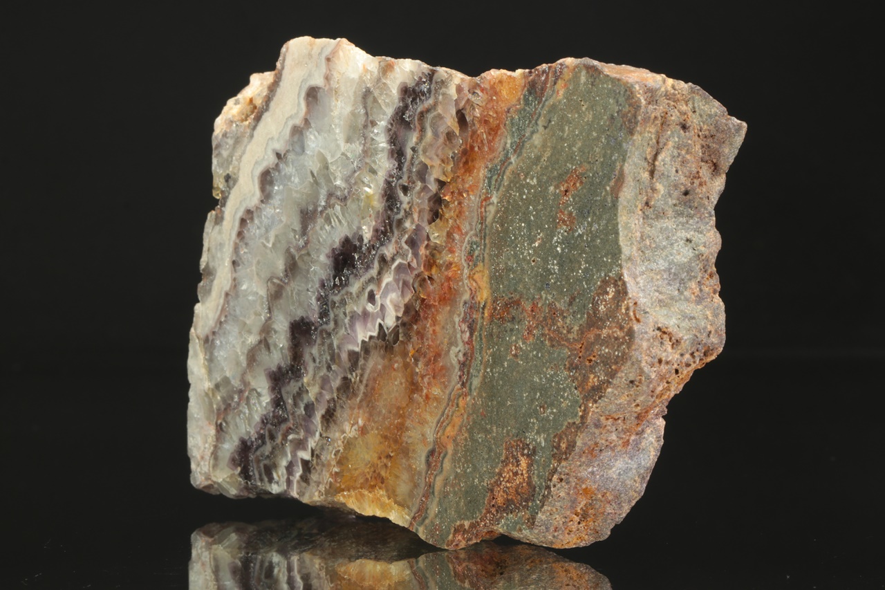 Polished Chevron amethyst specimen transitioning into Rock Crystal from the Ore Mountains .