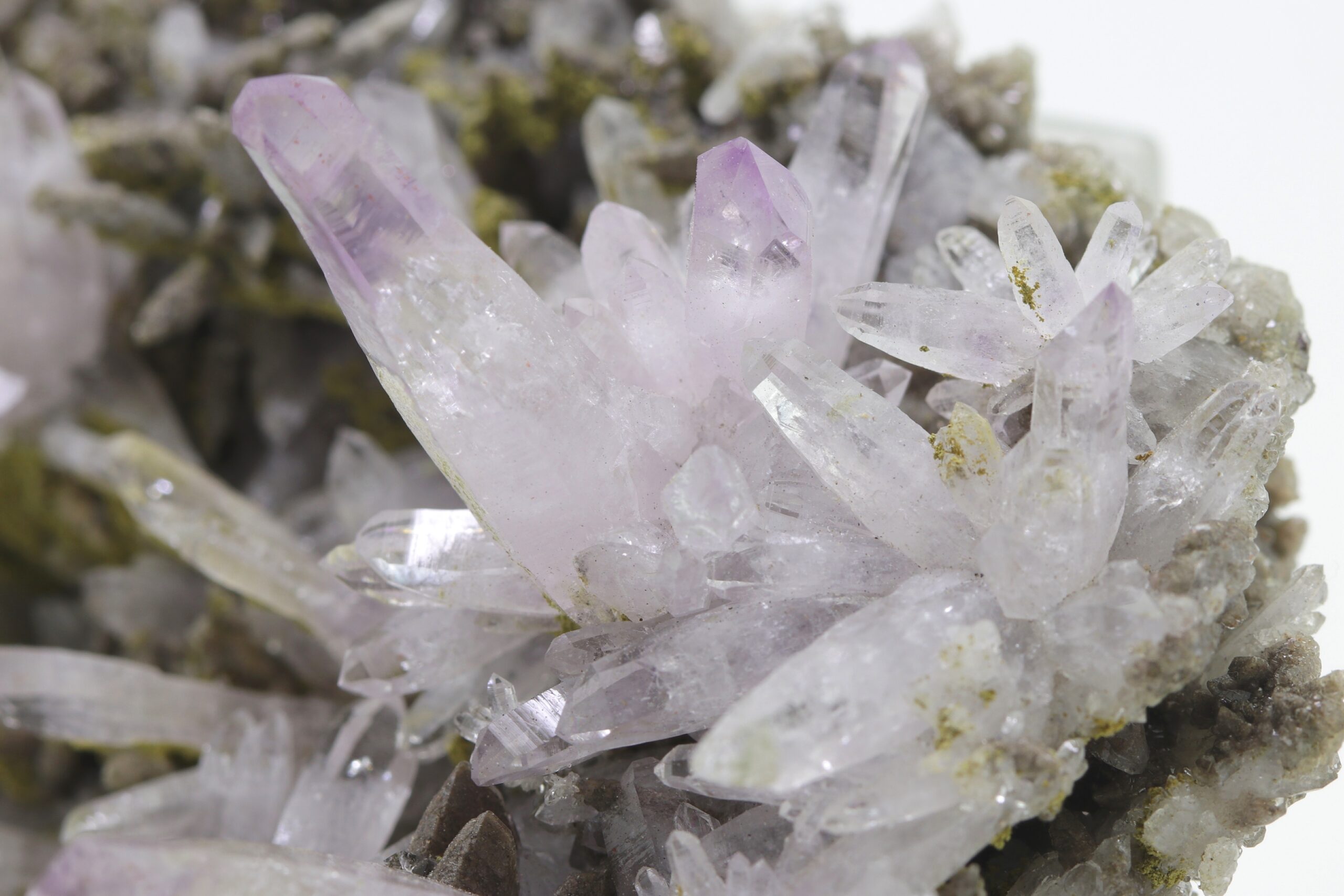 Clear amethyst crystals from a classic locality. The largest crystal is 3.5 cm in size.