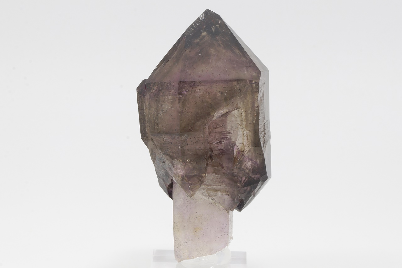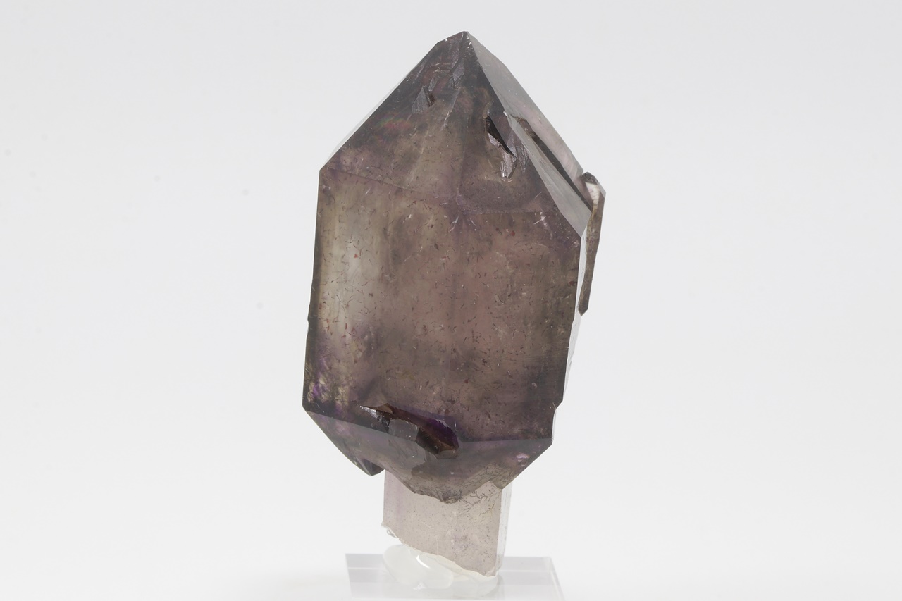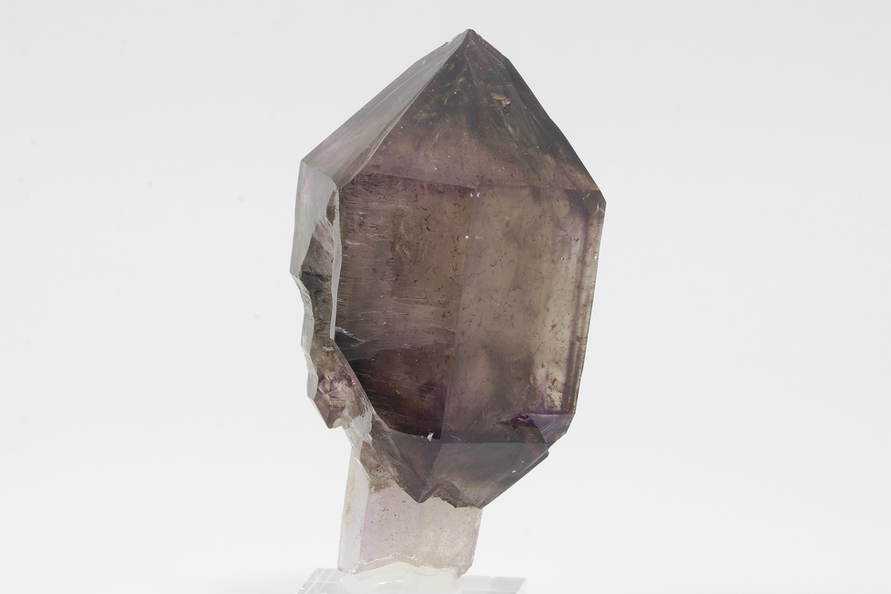 A beautiful specimen of dark scepter amethyst grown on a white stem. The tip of the amethyst is undamaged, and the size of the stem is 78 mm.