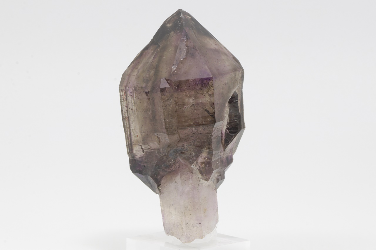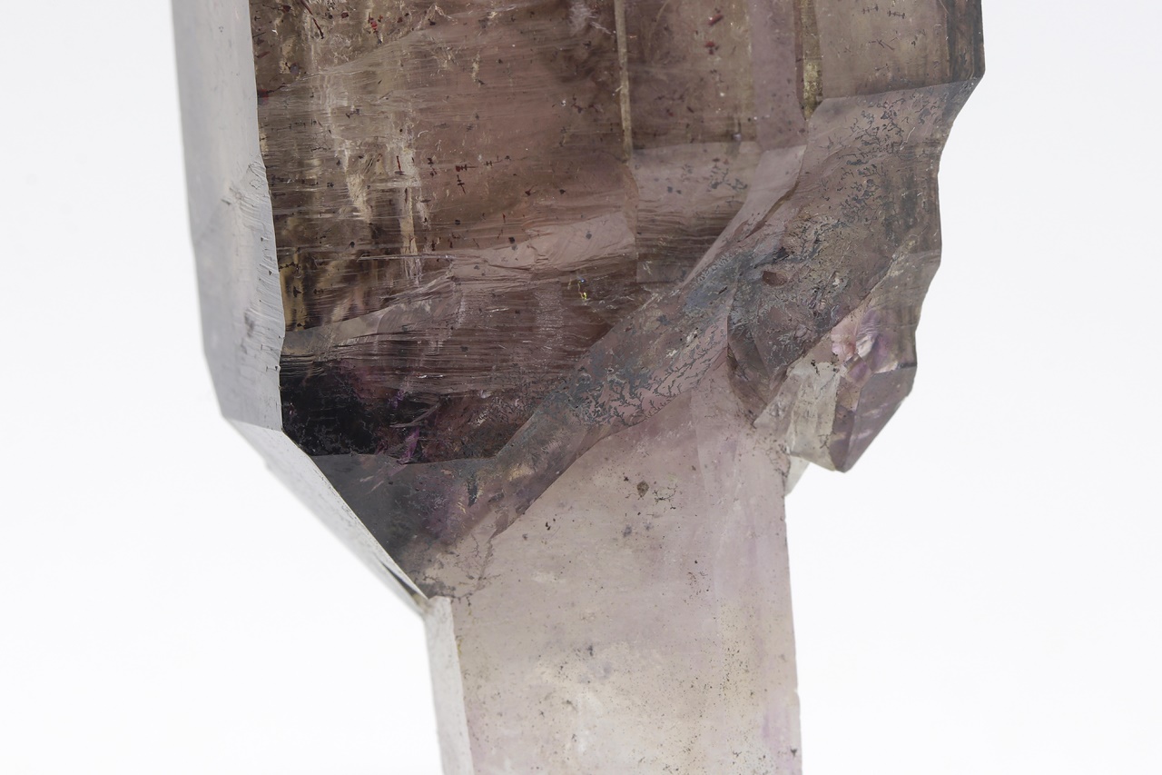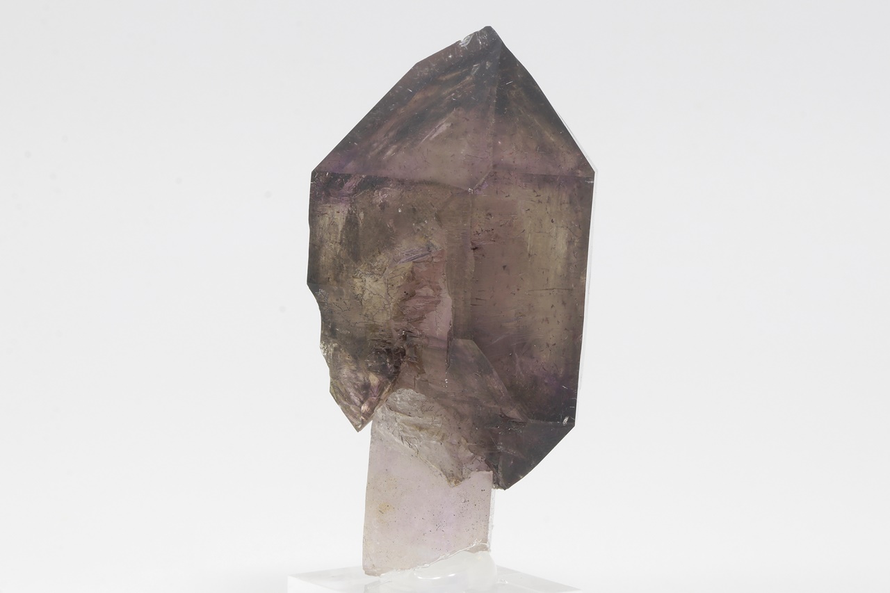 A beautiful specimen of dark scepter amethyst grown on a white stem. The tip of the amethyst is undamaged, and the size of the stem is 78 mm.
