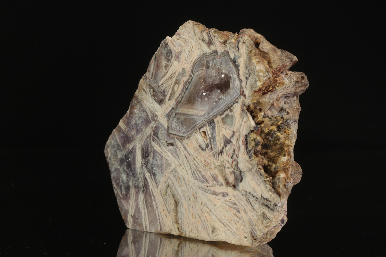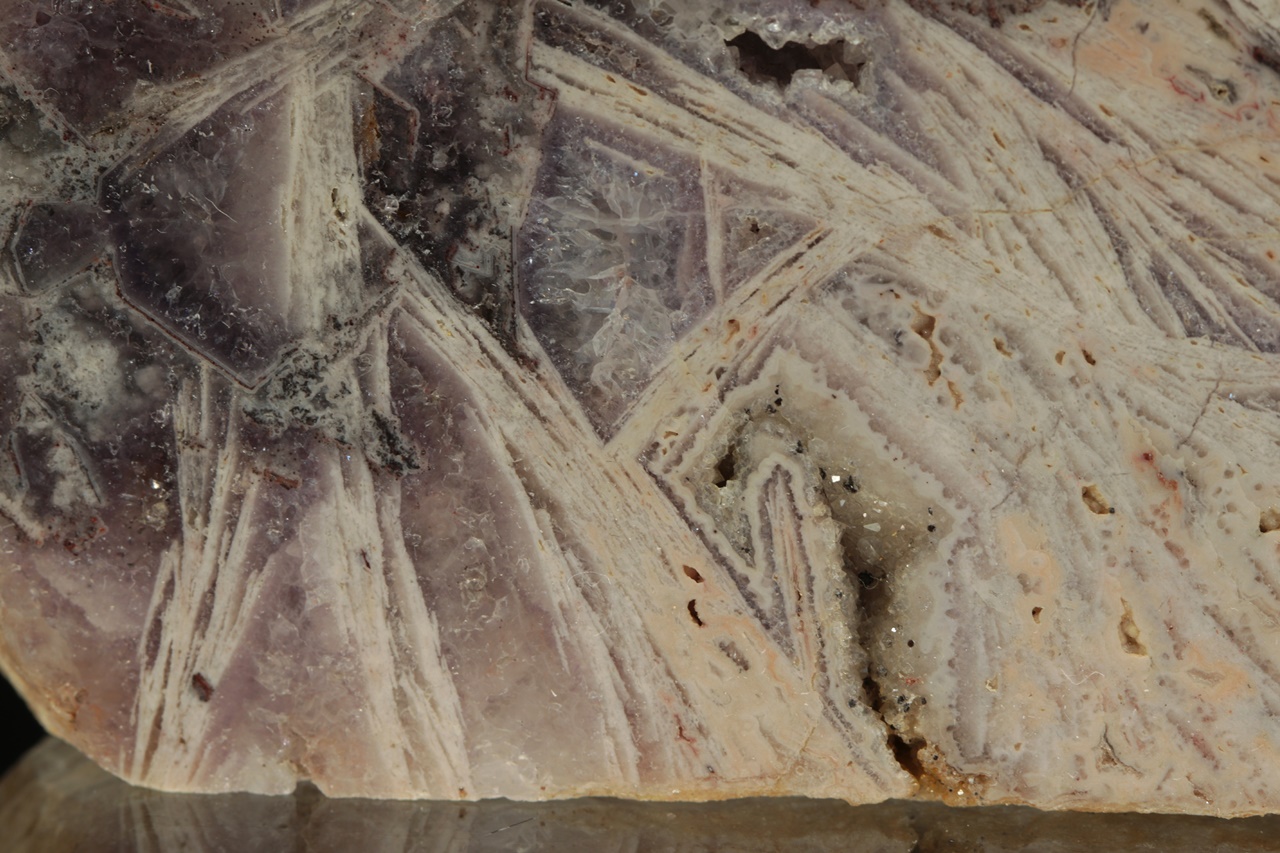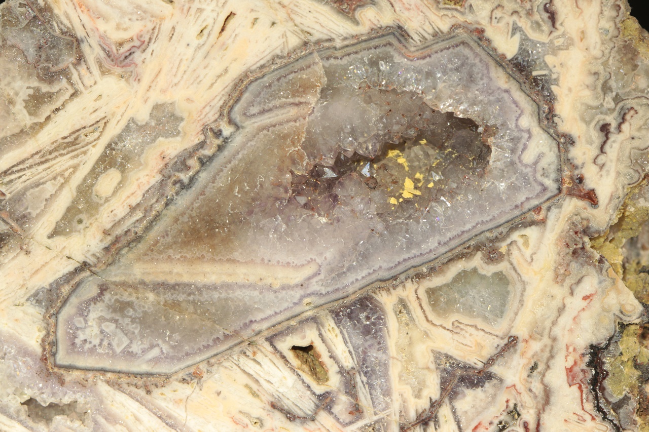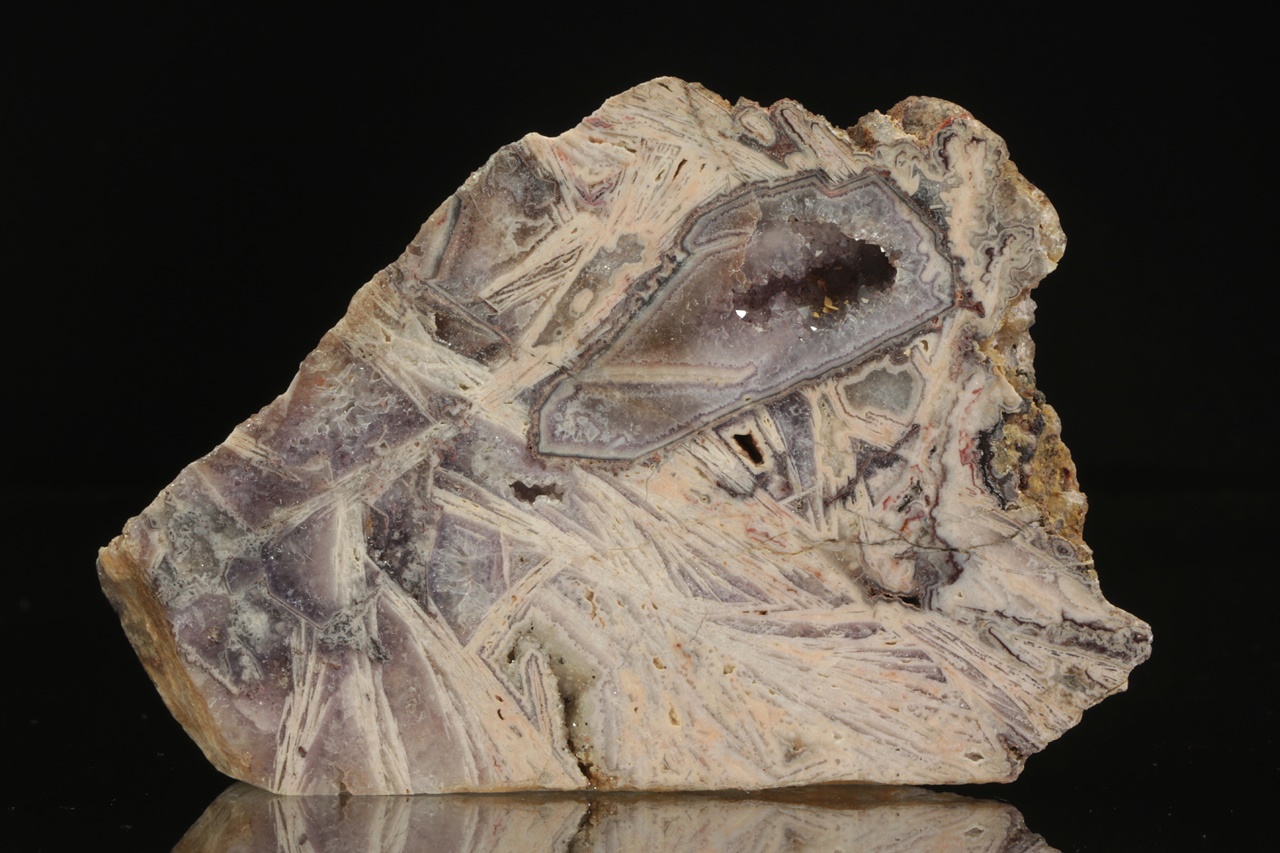 Křemenné pseudomorfózy po barytu a kalcitu s dutinou vyplněnou krystaly ametystu.
