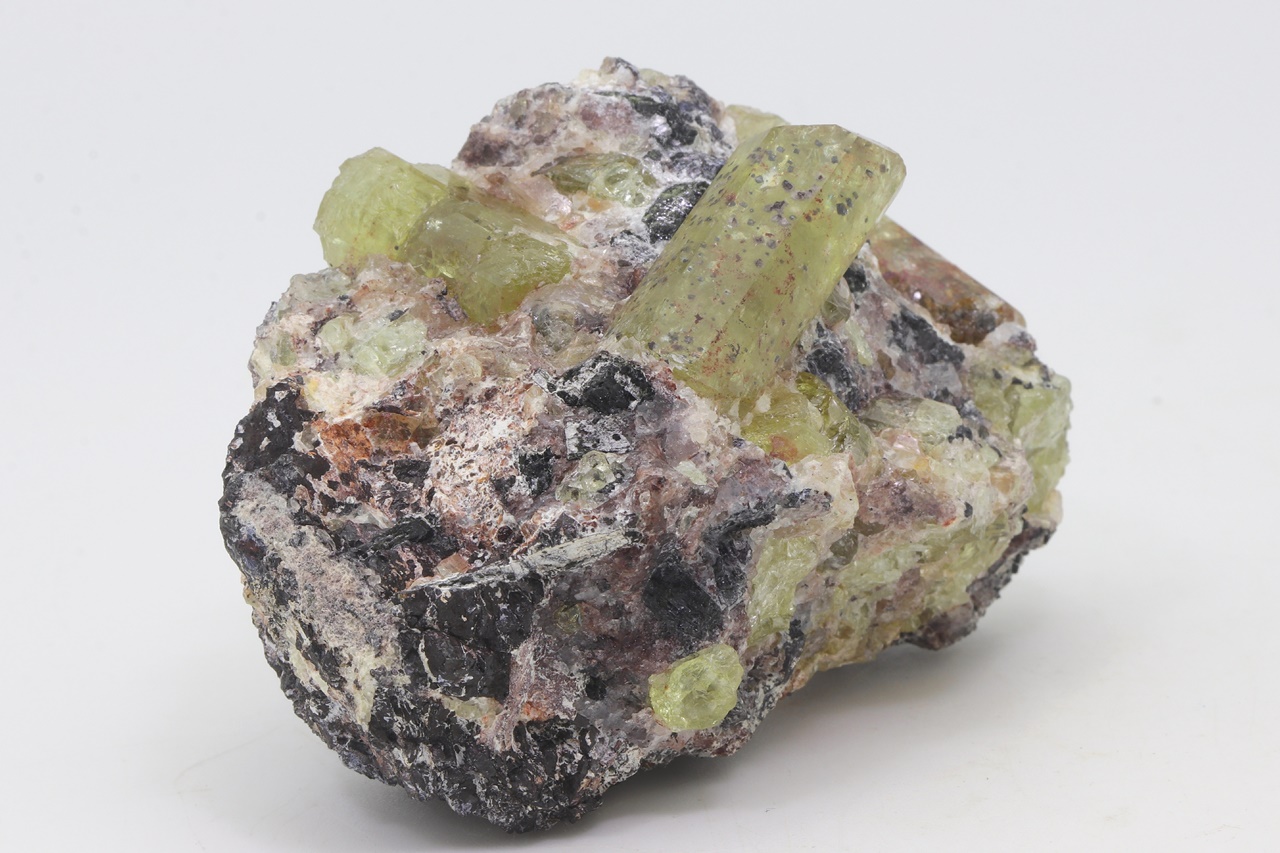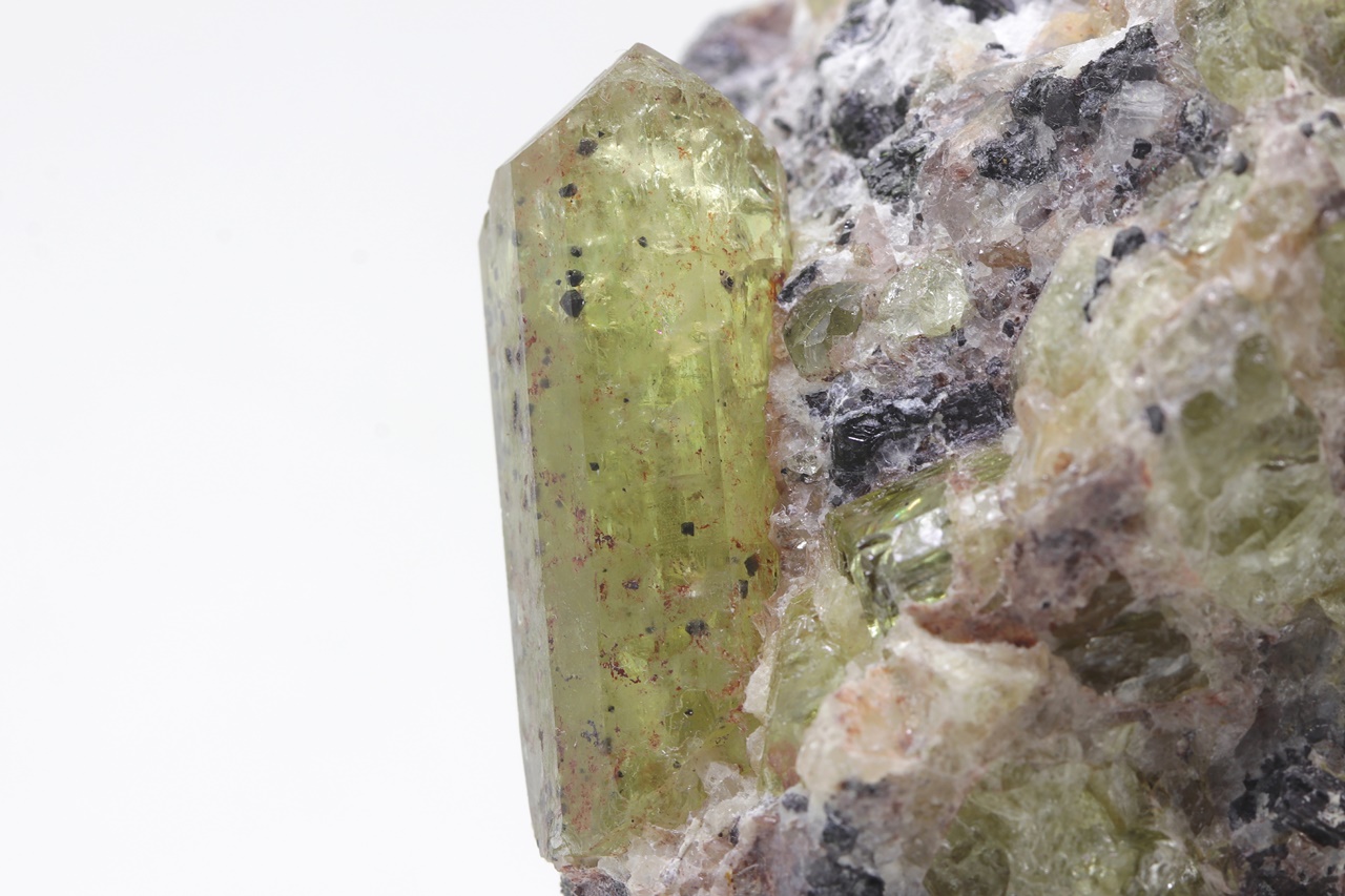 Intensely yellow, 3.5 cm large apatite crystal extracted from the mother rock. The sample is trimmed on the bottom side.