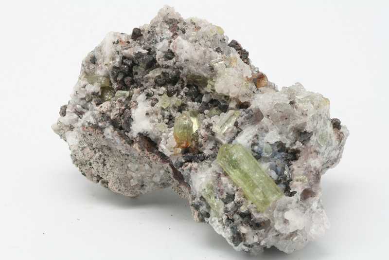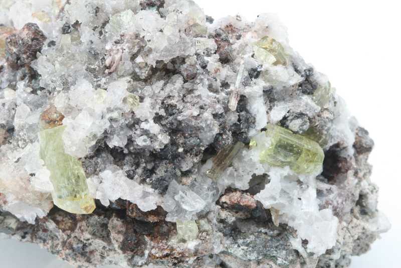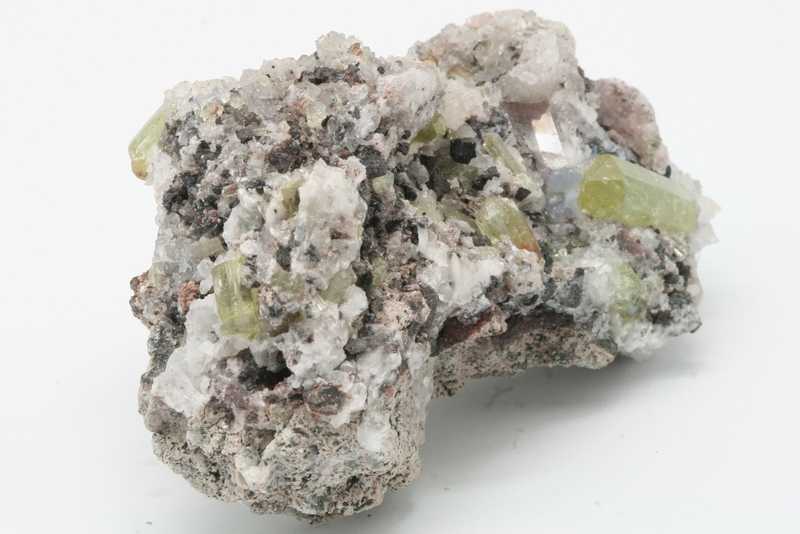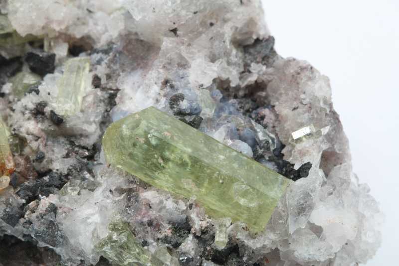 Crystals of apatite from Mexico. Green terminated glossy apatite crystals embedded in the matrix, reaching up to 21 mm in size.