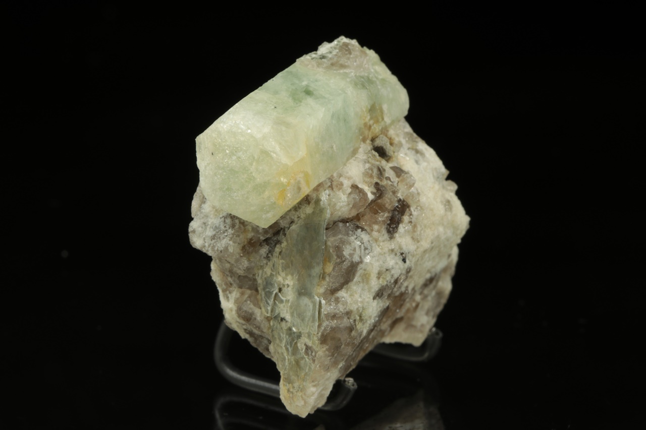 Aquamarine crystal with terminations on both ends from Střelecký mine near Maršíkov. The length of the crystal is 24 mm.