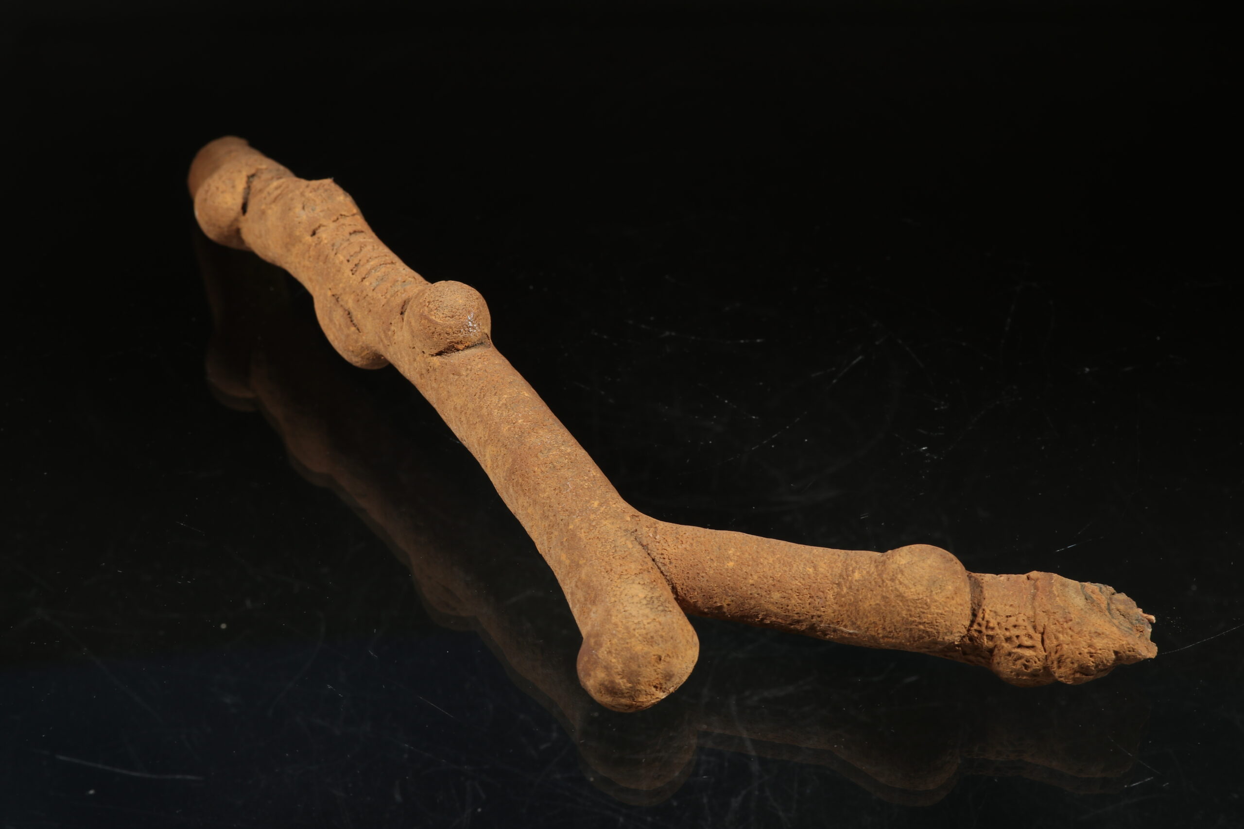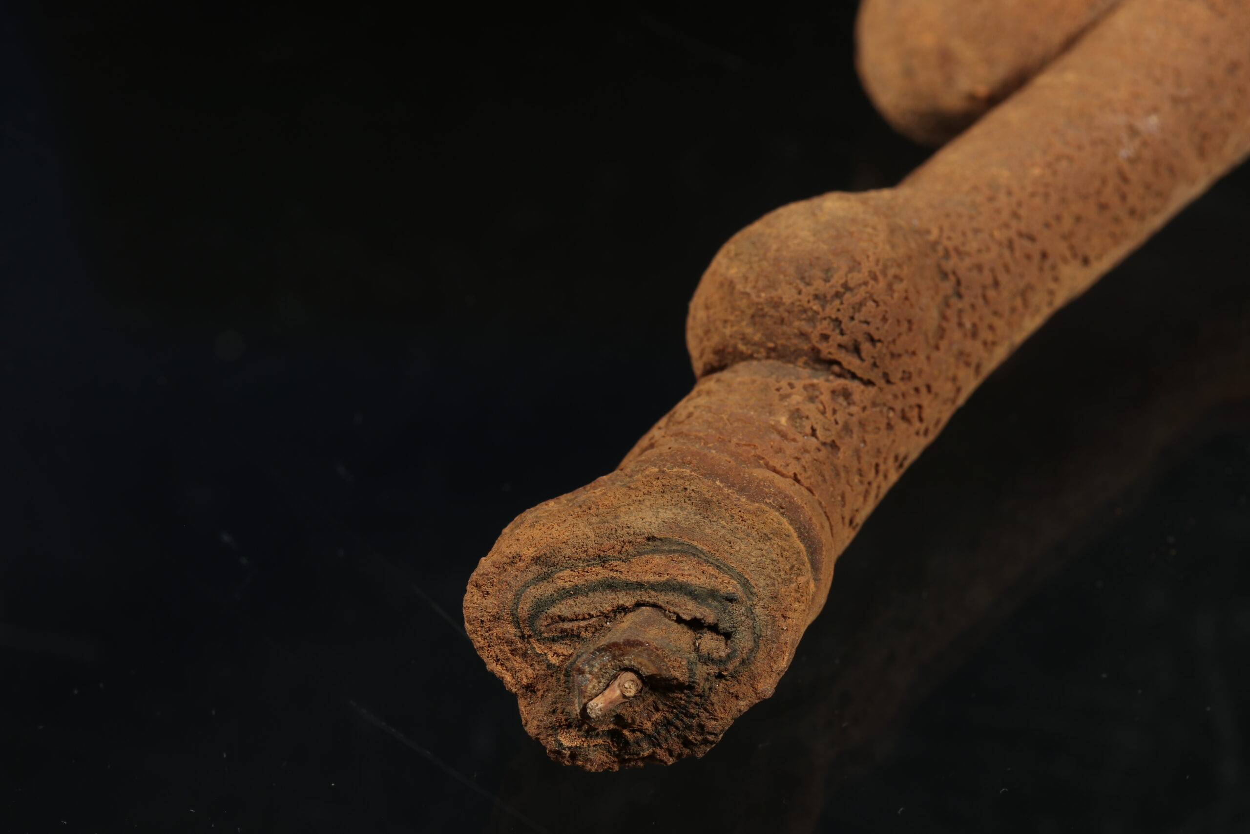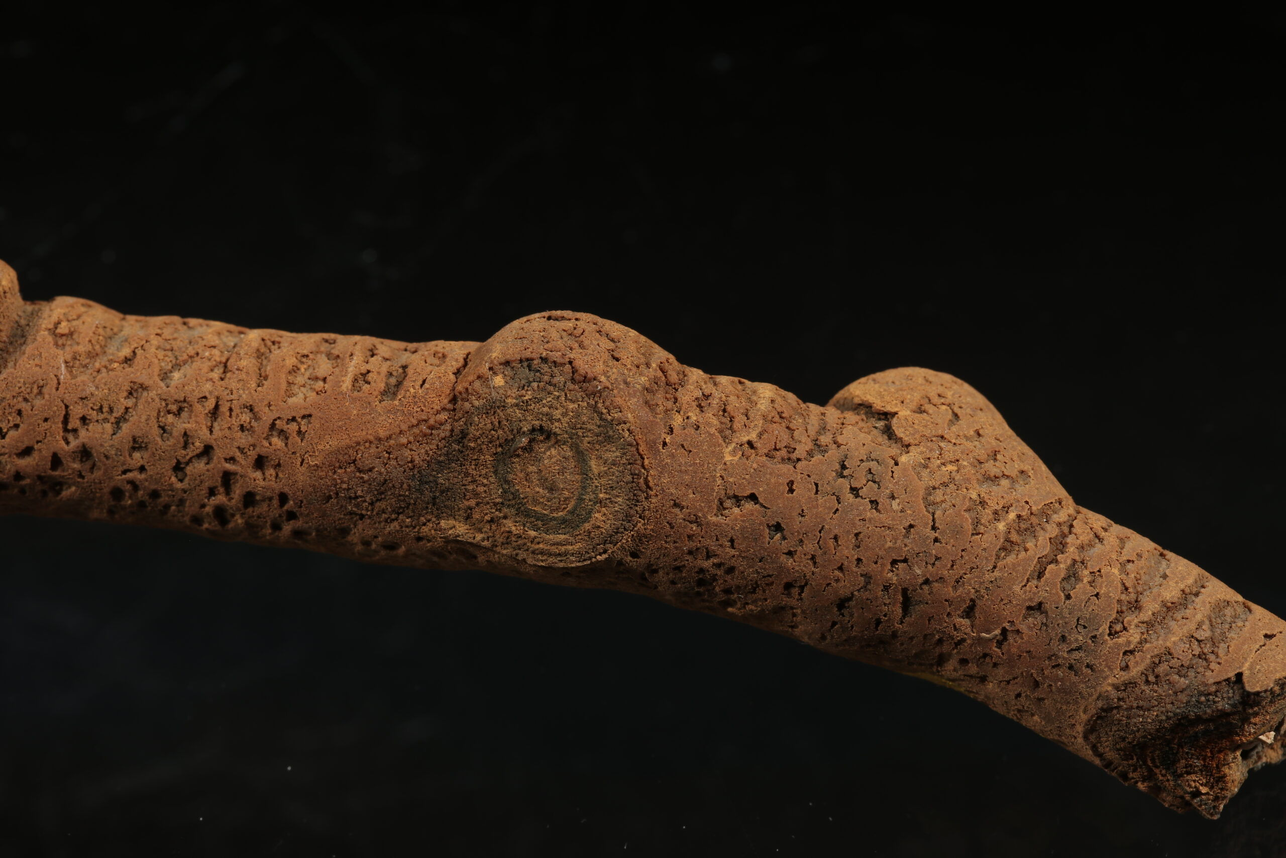 Recent aragonite stalactite grown around the central twig. Aragonite was precipitated from mine waters.