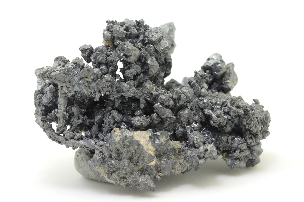 Jedná se o mimořádně esteticky vzhlednou ukázku tohoto sulfidu stříbra, která pochází z marocké lokality Imiter. Argentit vytváří kovově lesklé, ocelově šedé, nepravidelné krystaly, které na sebe rovněž vzájemně narůstají. Tato ukázka je velmi bohatá a tvořená převážně jedním minerálem – argentitem. Jedná se o sbírkovou ukázku tohoto minerálu.