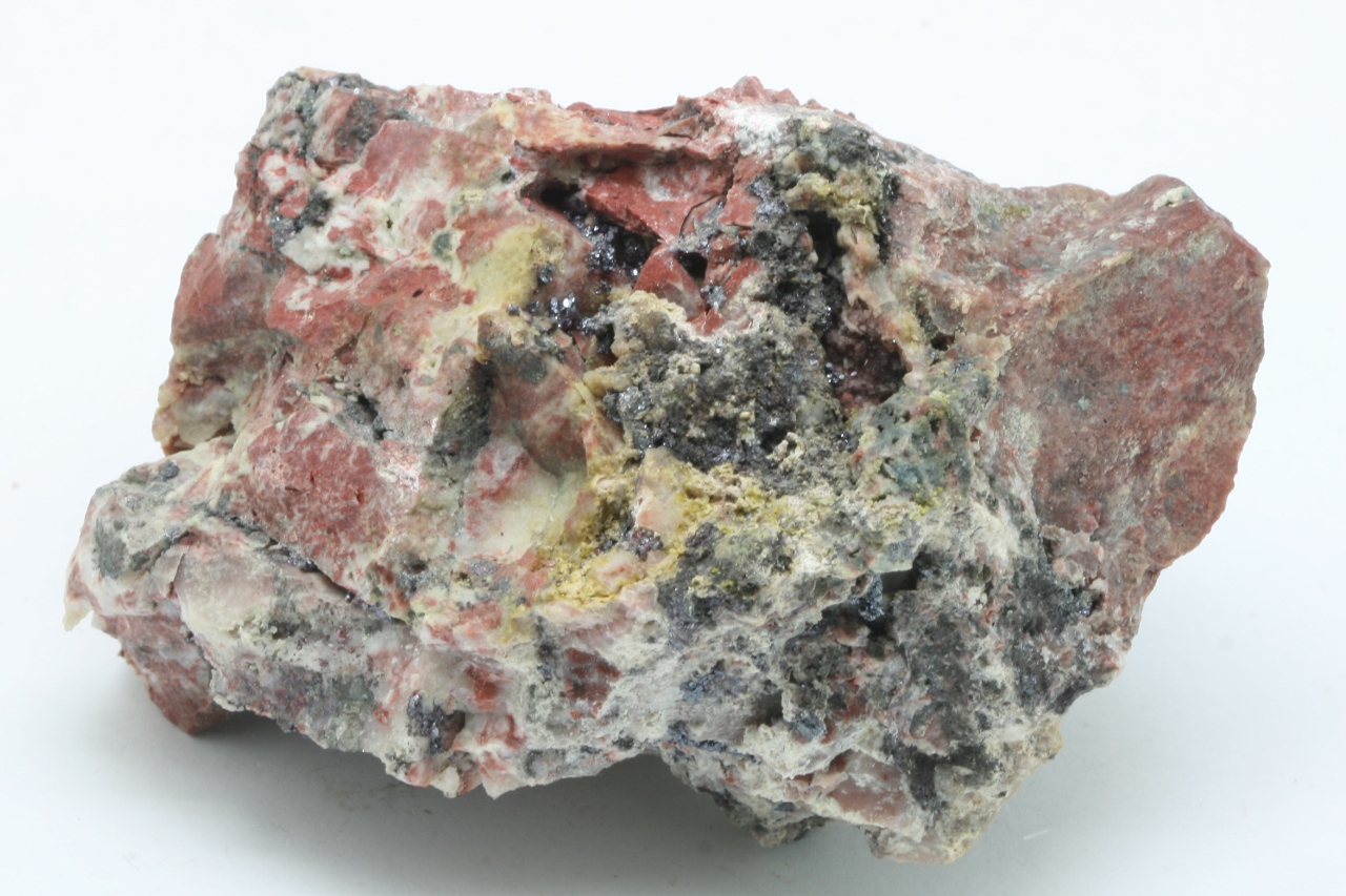 Small dark red Proustit crystals with black Argentopyrit crystals. Typical silver sulfide association from Jáchymov.