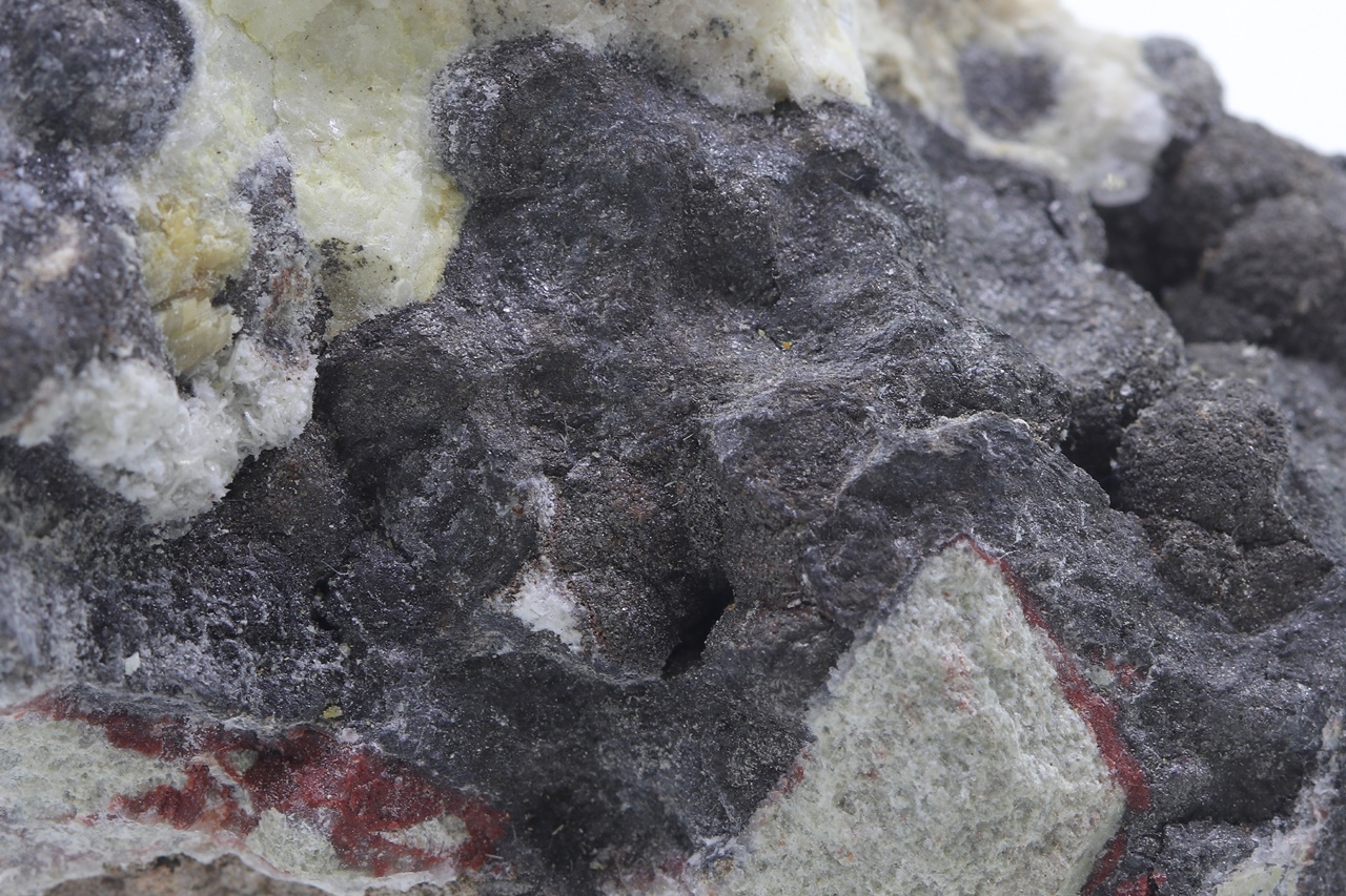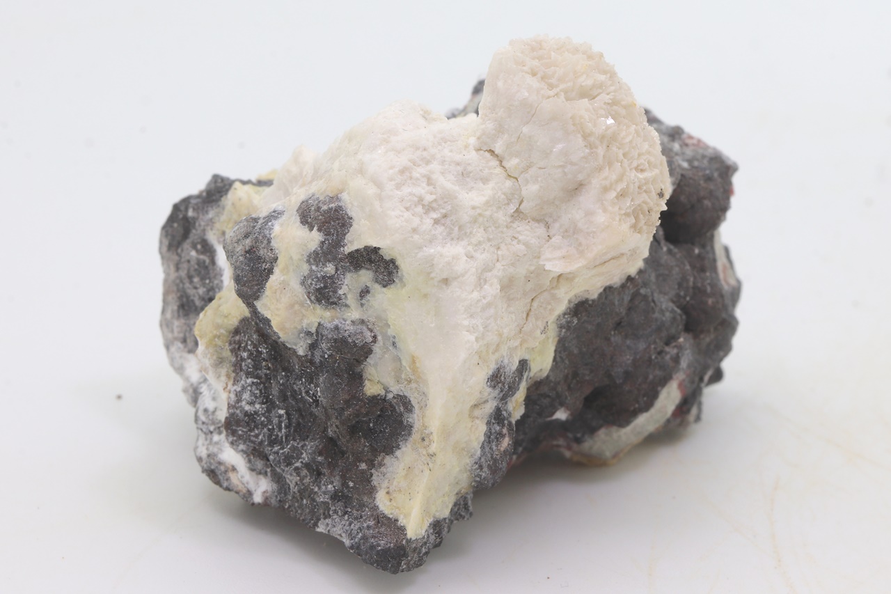 Native arsenic occasionally forming kidney-shaped aggregates with yellowish dolomite .