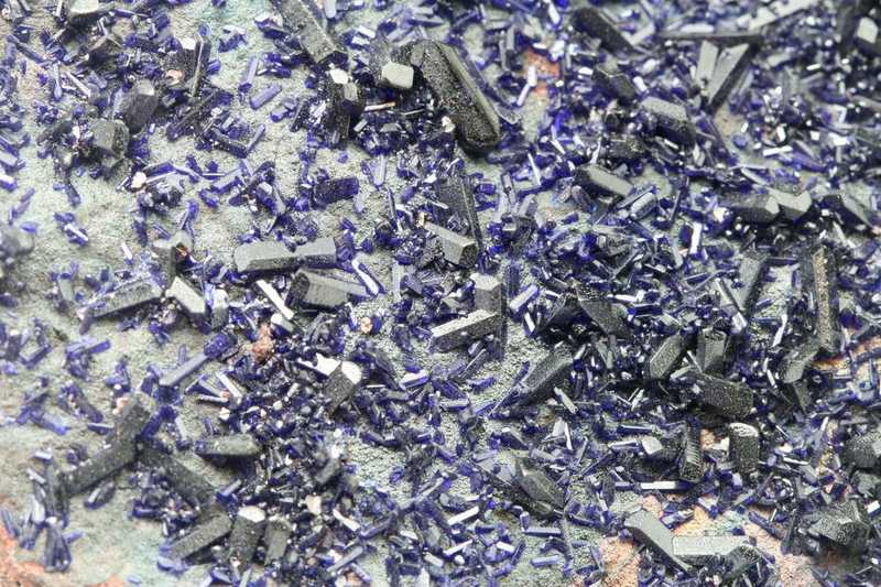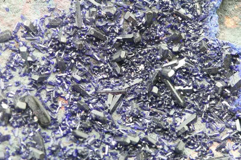 A nice sample of azurite from Mexico, from an excellent find last year. A very nice specimen of dark blue, shiny, and well-developed azurite crystals.