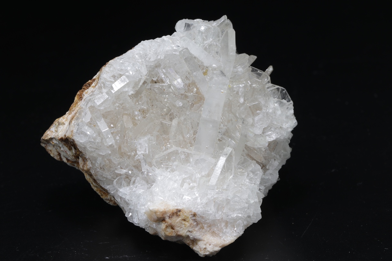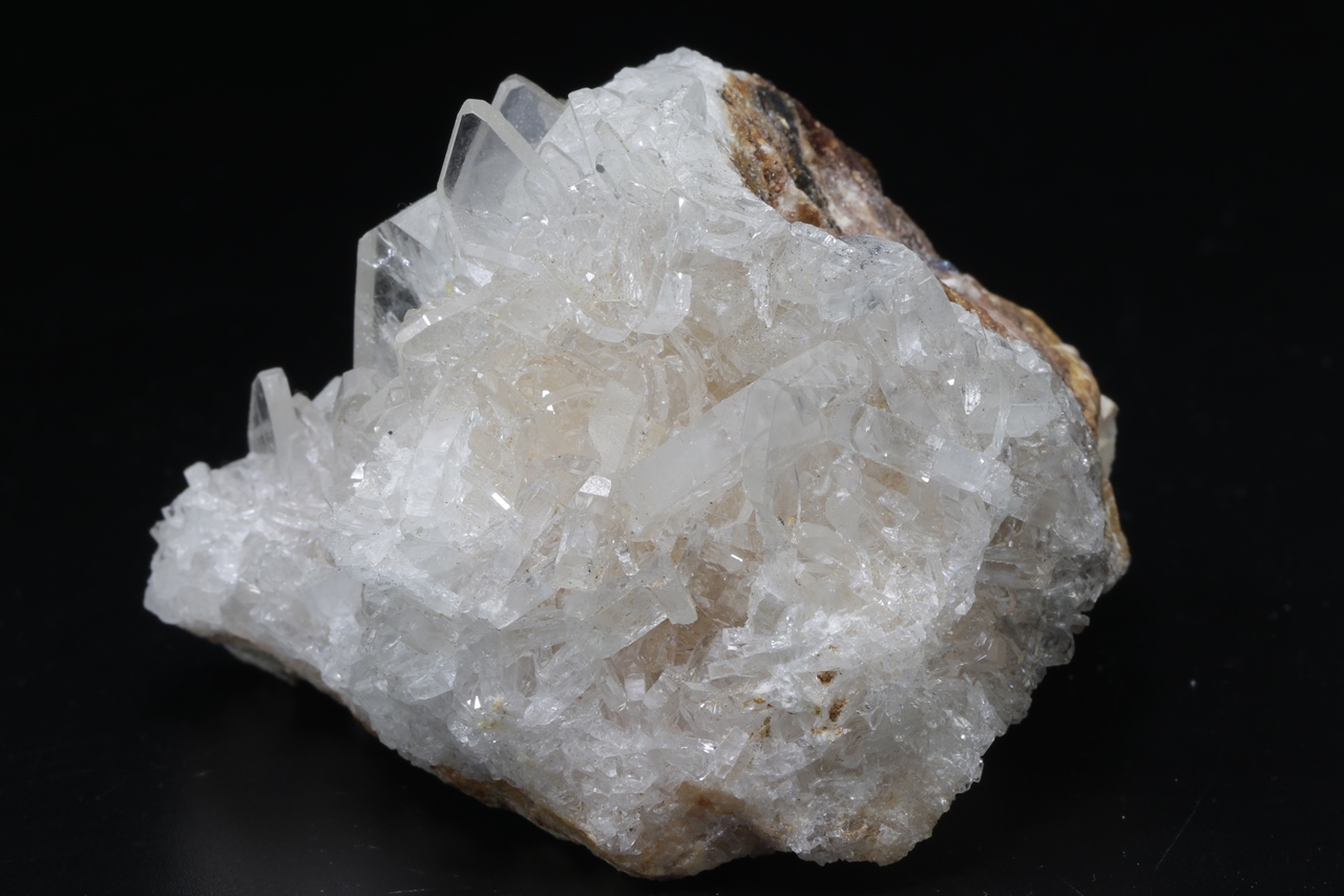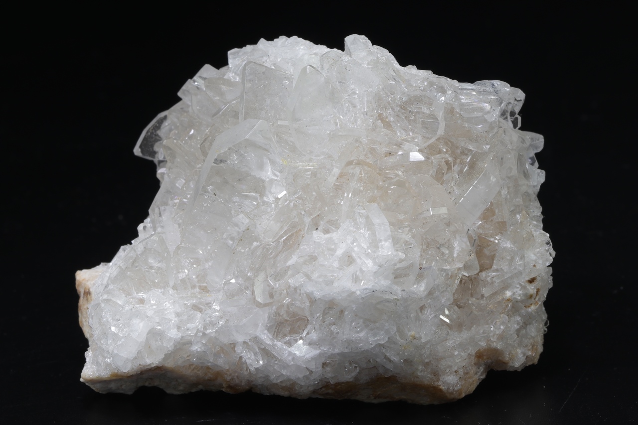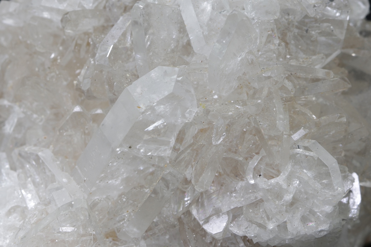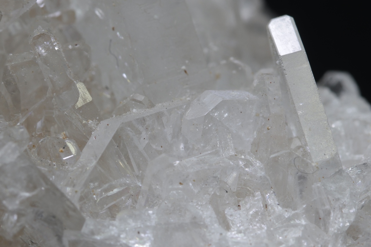 A druse of clear, clean, highly glossy baryte crystals, the largest of which is 2 cm in size .