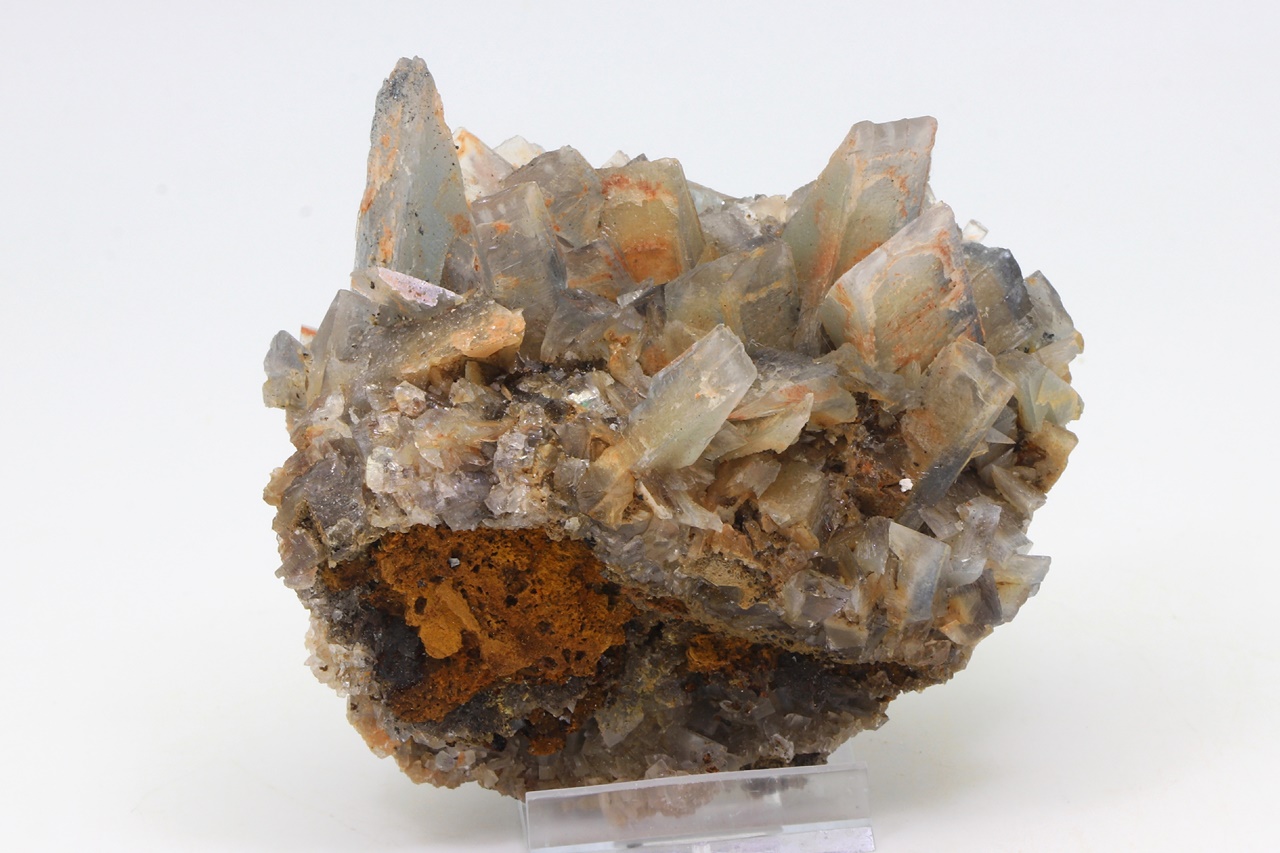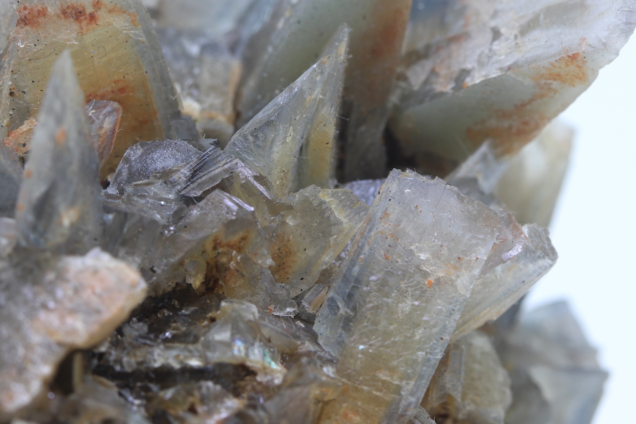Sample of blue-gray, zonal crystals called in german “Meißelspat” due to their chisel-like shape typical for this locality. The largest crystal is 4 cm big.