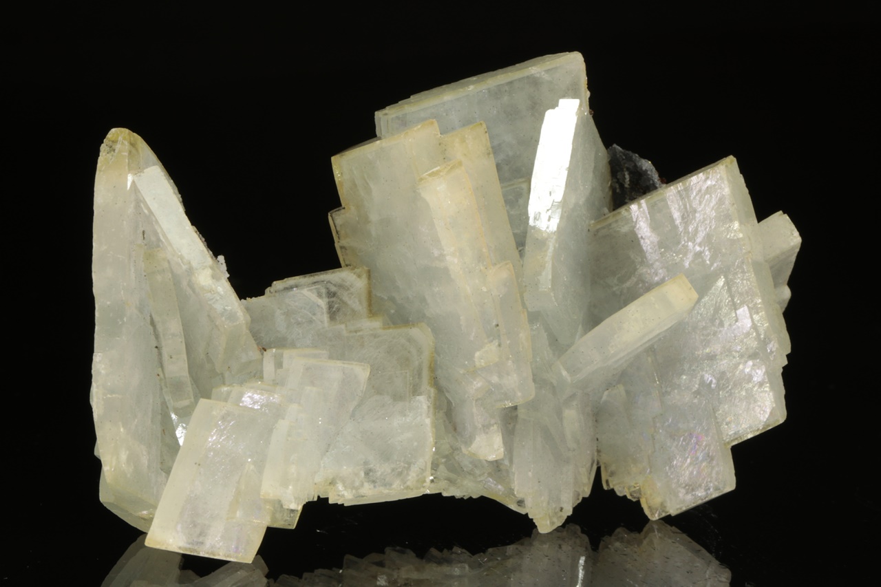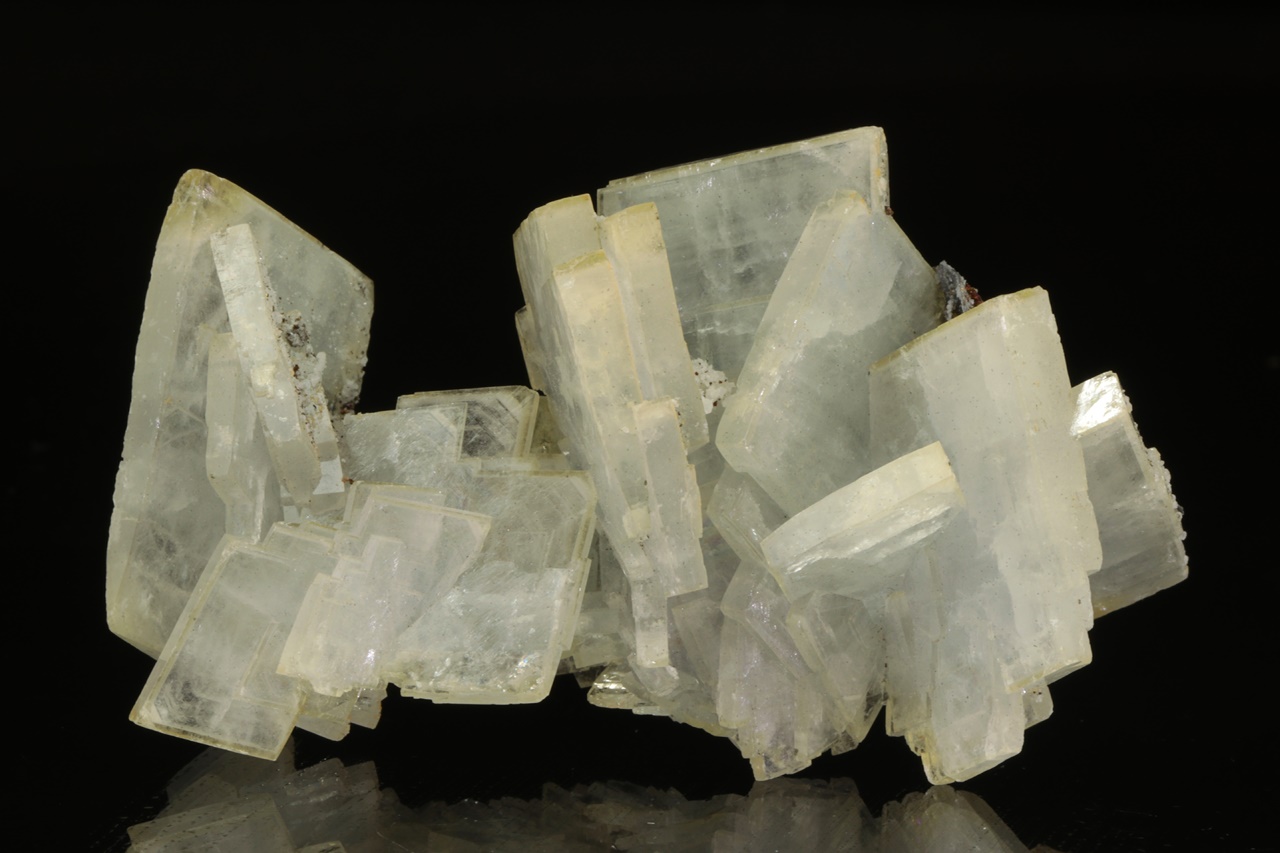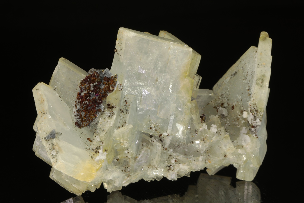 An aesthetic cluster of bluish glossy barite crystals. The largest crystal is 4 cm large.
