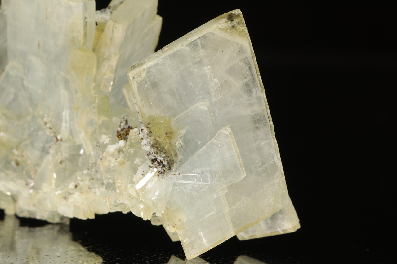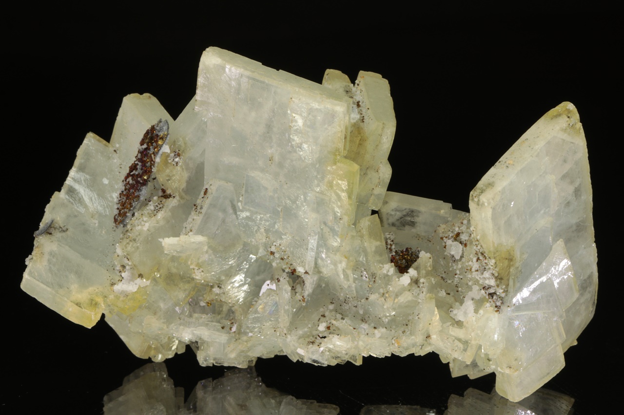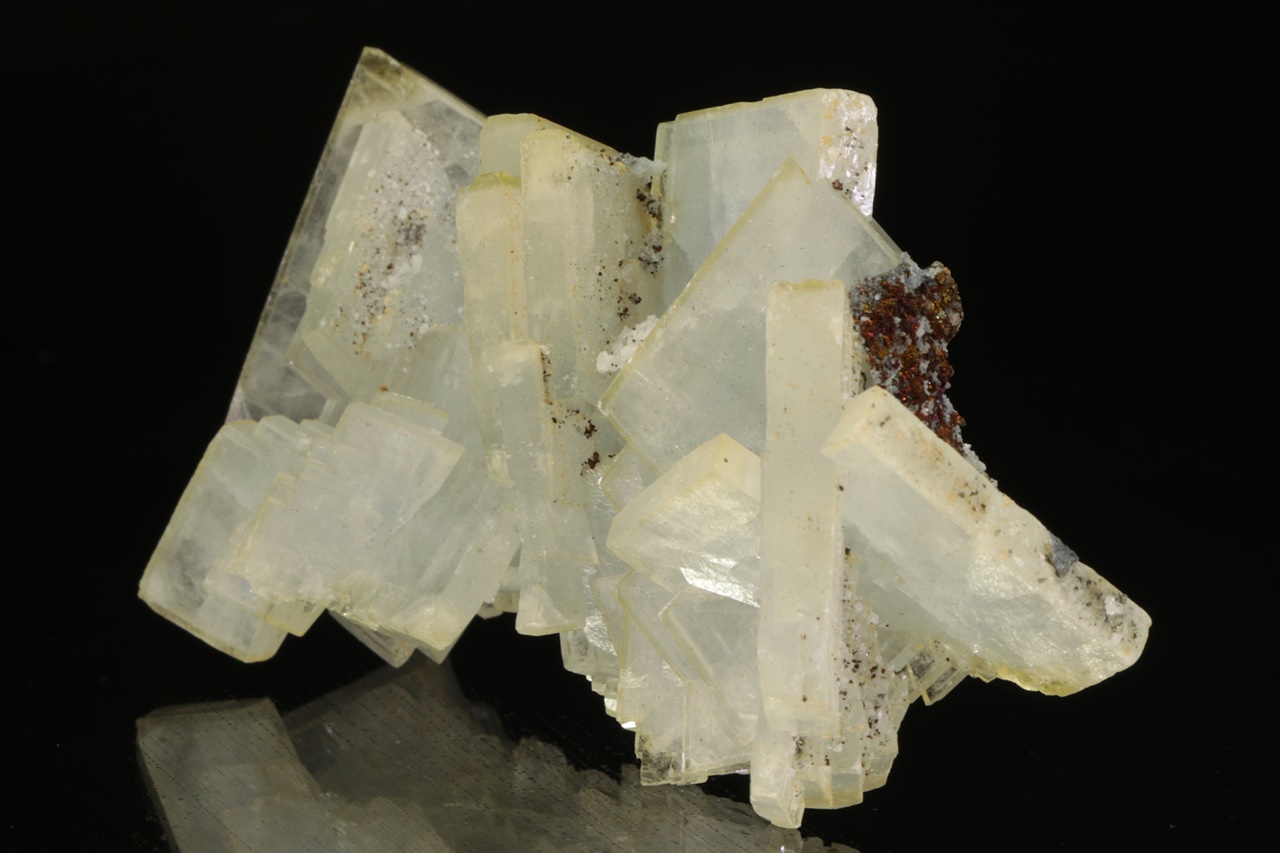 An aesthetic cluster of bluish glossy barite crystals. The largest crystal is 4 cm large.