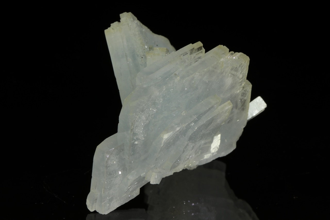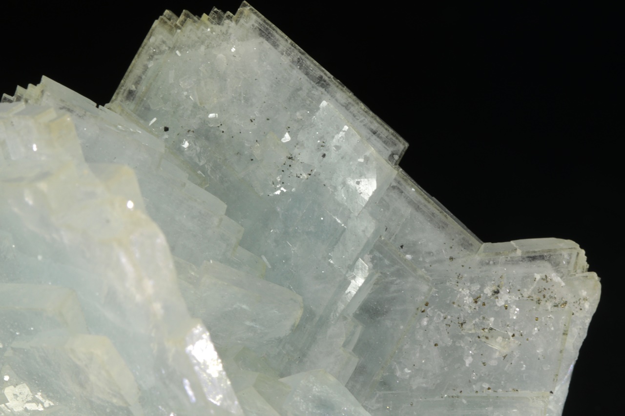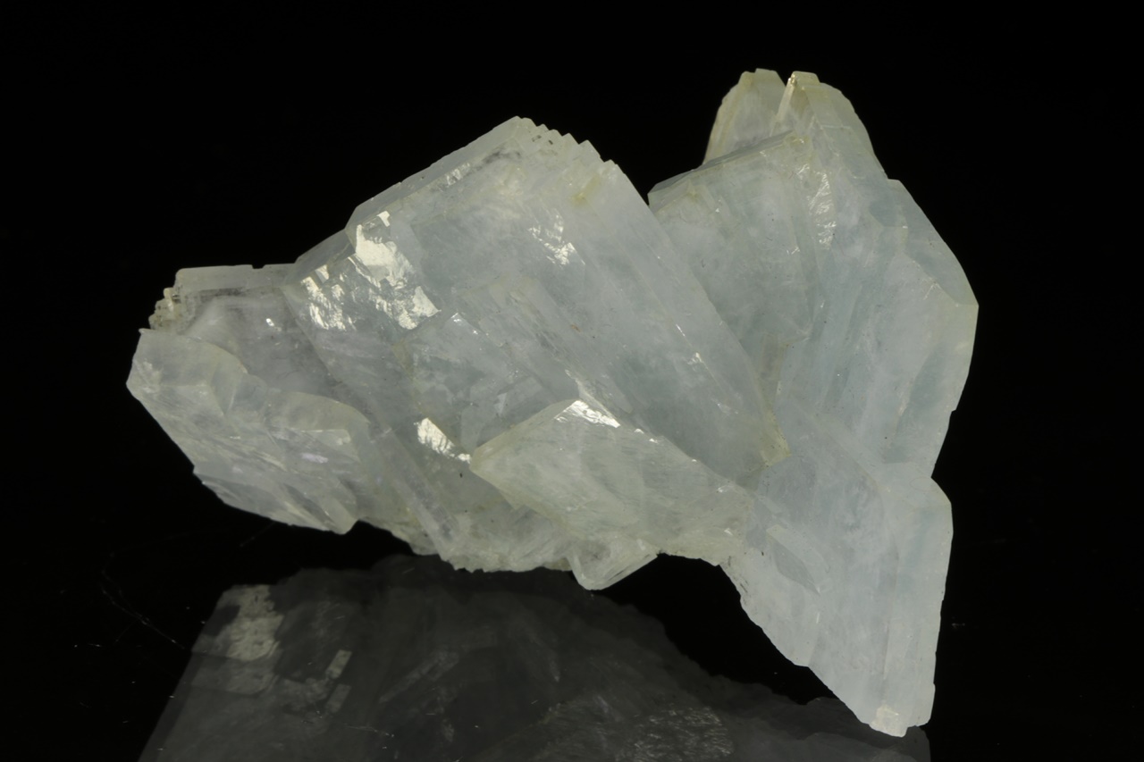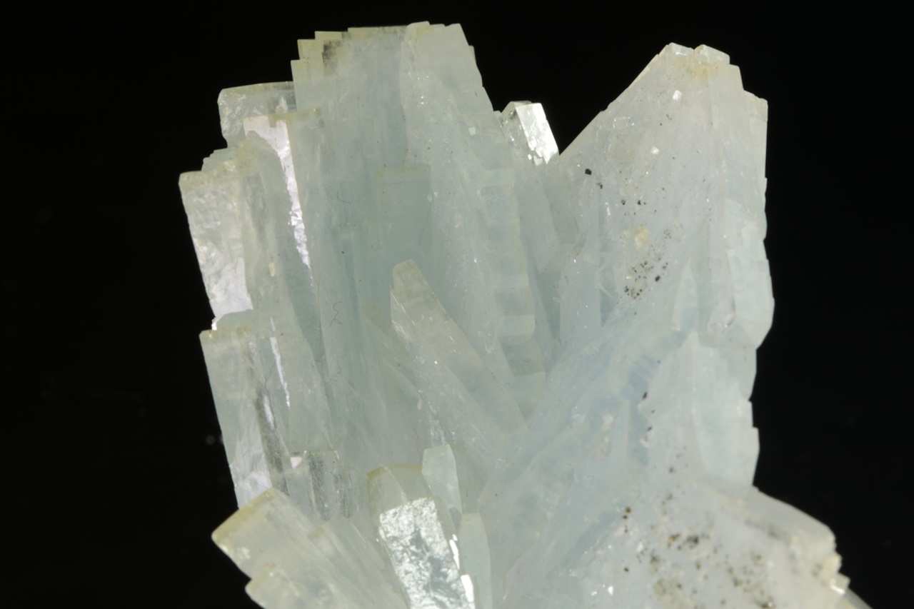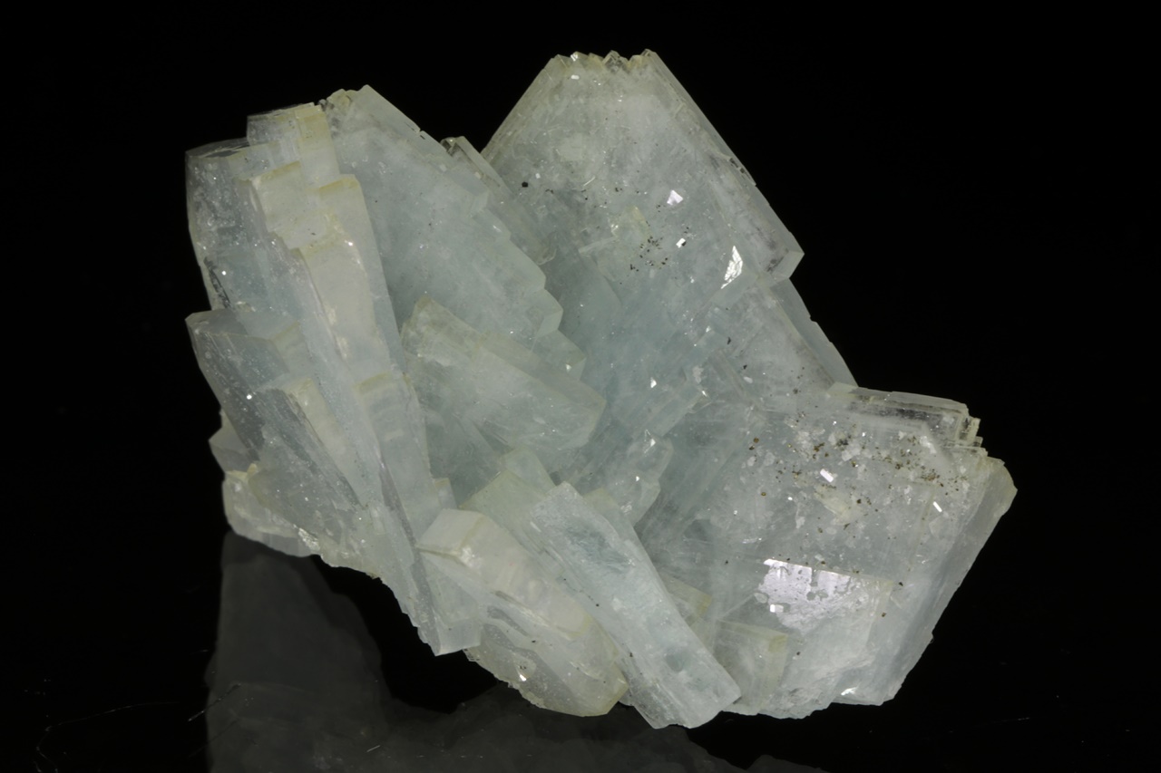 Cluster of tabular, shiny crystals of baryte of pale blue color, up to 3 cm in size .