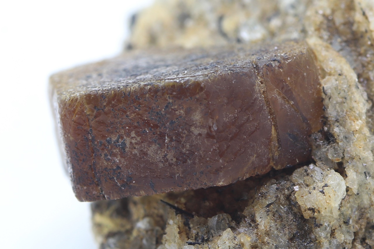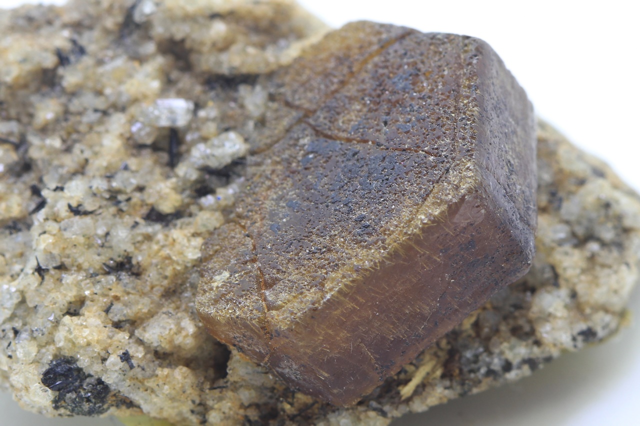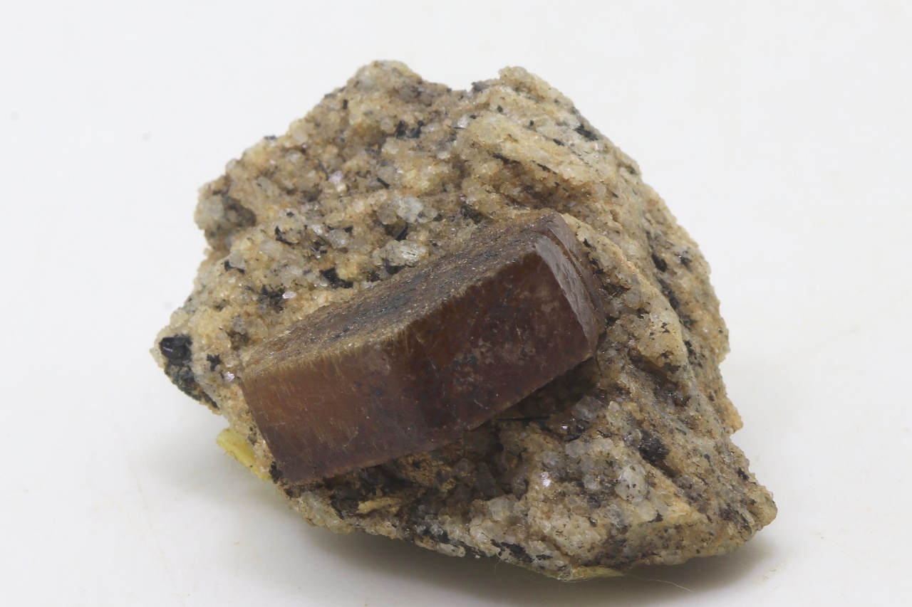 An exceptionally large (17 mm), well-defined crystal of cerium carbonate.