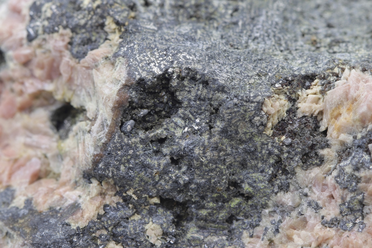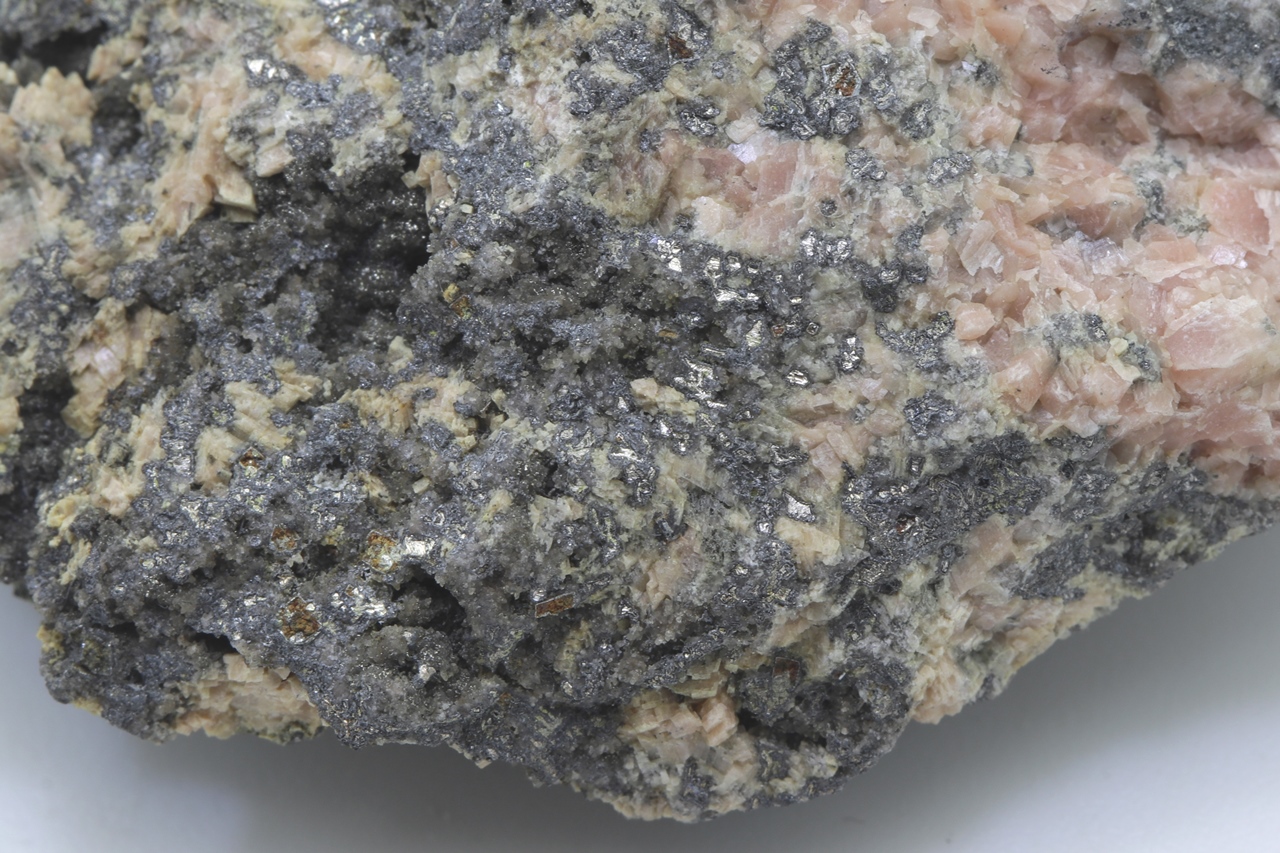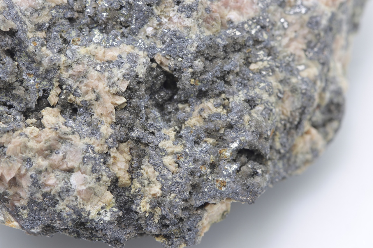 Bismuth on the sample forms massive, steel-gray, metallic lustrous accumulations, which permeate throughout the entire sample, which is composed of carbonates. In addition to other small grains, bismuth also forms small aggregates of irregular shape, which are primarily located in open cavities. This is a quality example of this mineral from the locality Jáchymov.