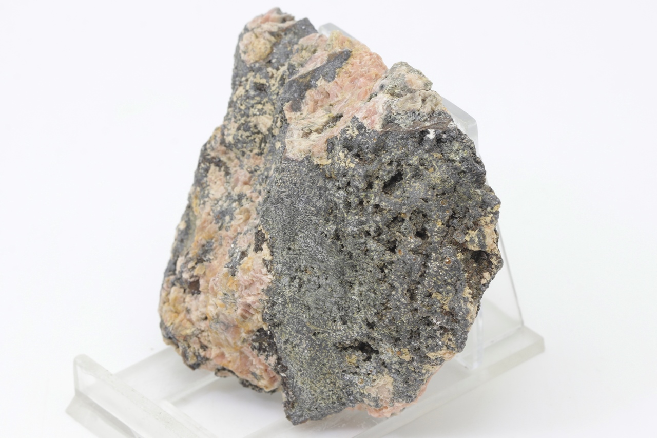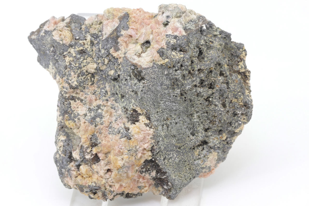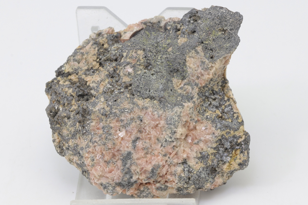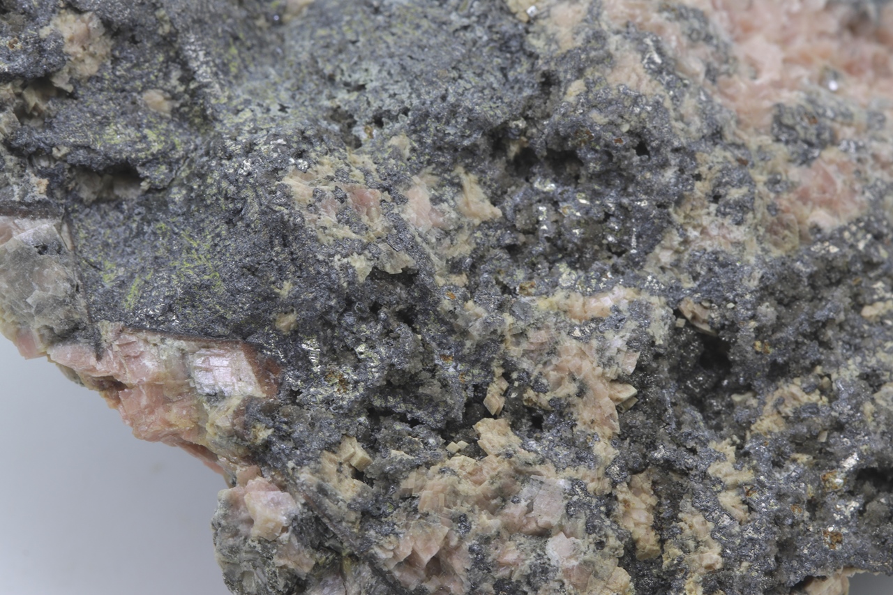 Bismuth on the sample forms massive, steel-gray, metallic lustrous accumulations, which permeate throughout the entire sample, which is composed of carbonates. In addition to other small grains, bismuth also forms small aggregates of irregular shape, which are primarily located in open cavities. This is a quality example of this mineral from the locality Jáchymov.