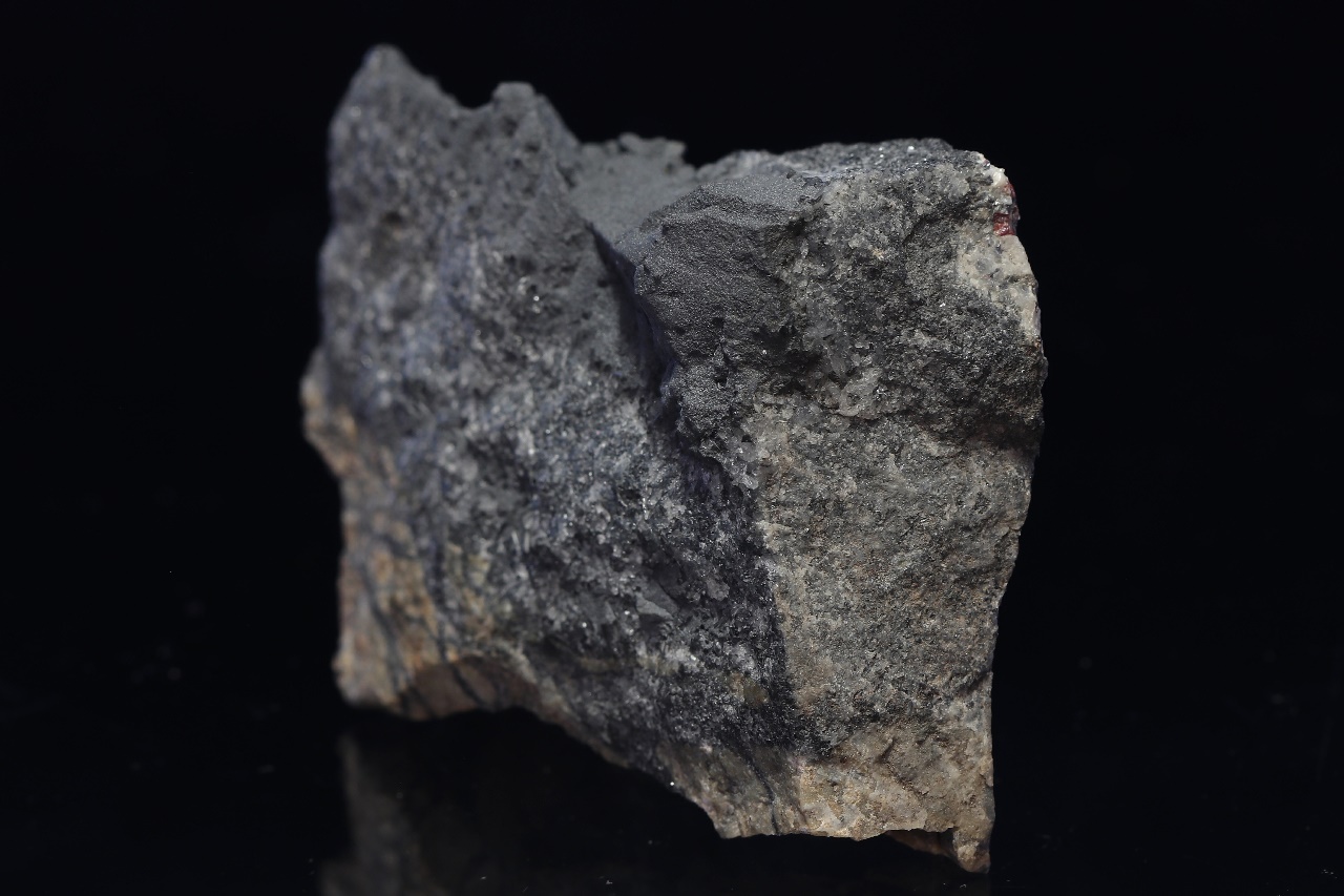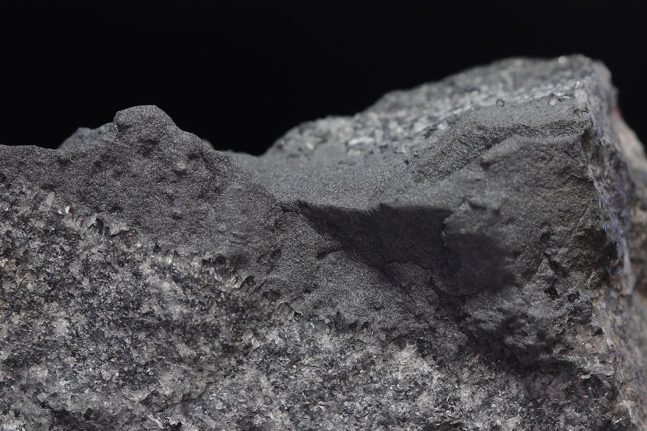 Gray, dull, massive boulangerite perched on stibnite intergrown with quartz. The specimen comes from the February 25th Mine.