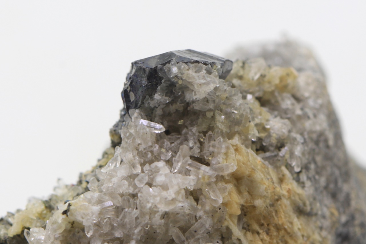 A well-terminated, 7 mm large crystal of black Bournonite.