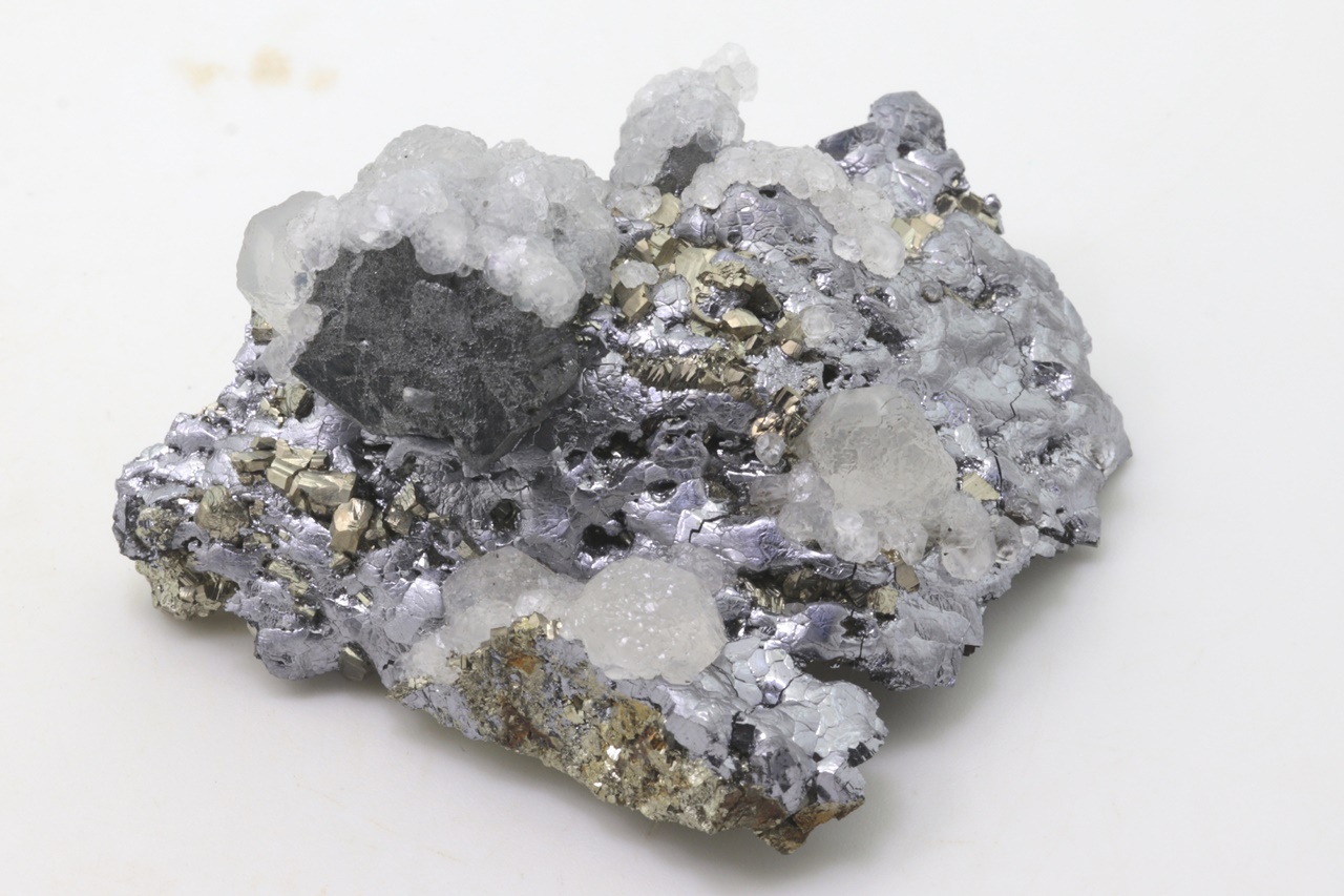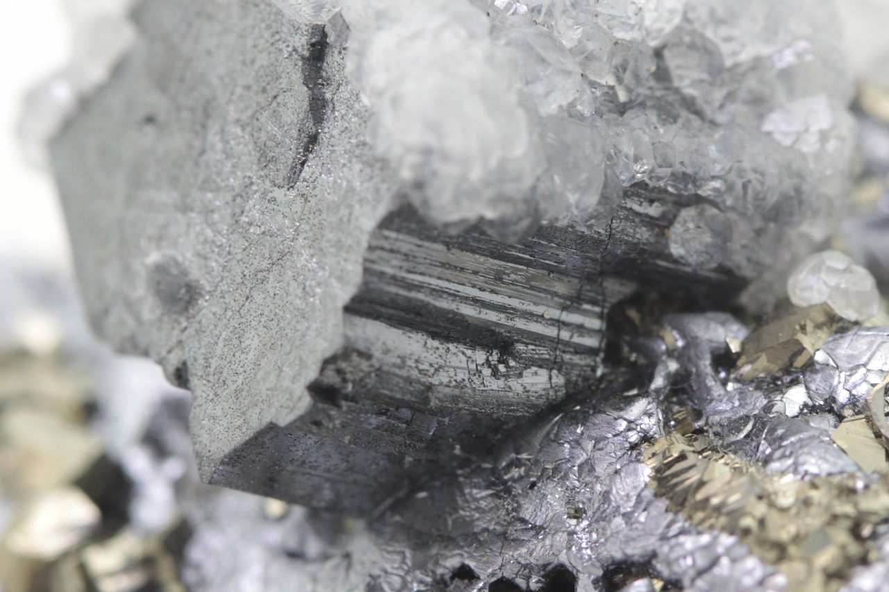 An exceptionally high-quality specimen of a very lustrous bournonite crystal with distinctive prismatic striation, grown on a melted galena. This habit of bournonite called “Rädelerz” is characteristic of Carpathian ore localities. The size of the crystal is 20 mm .