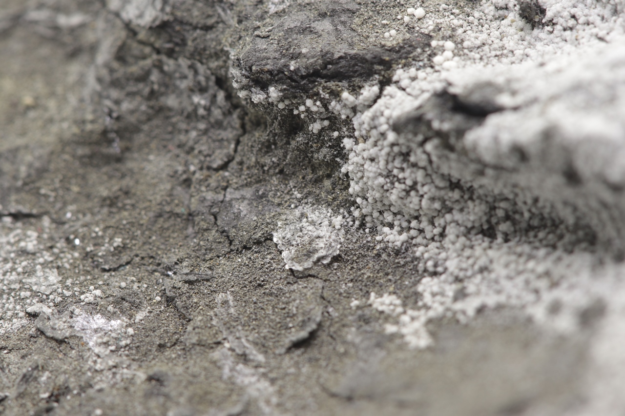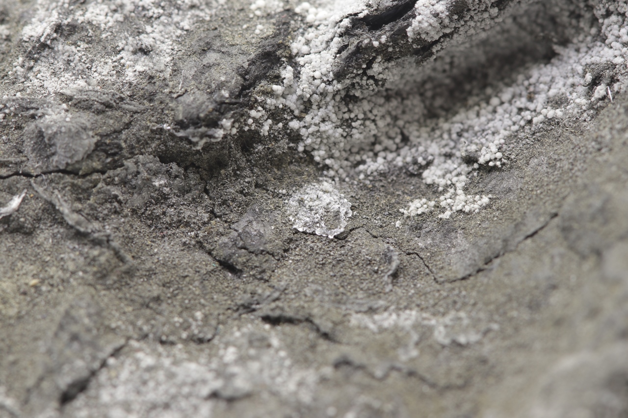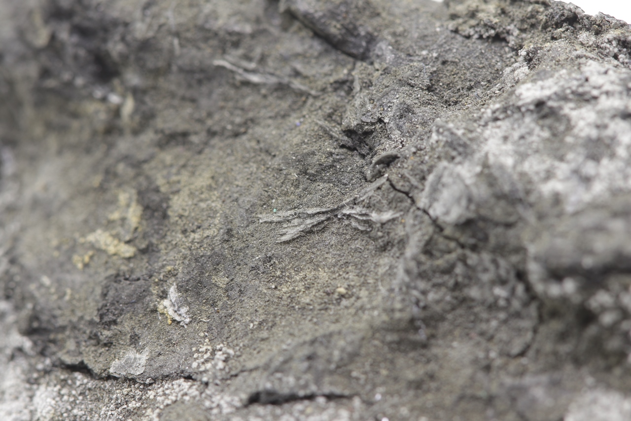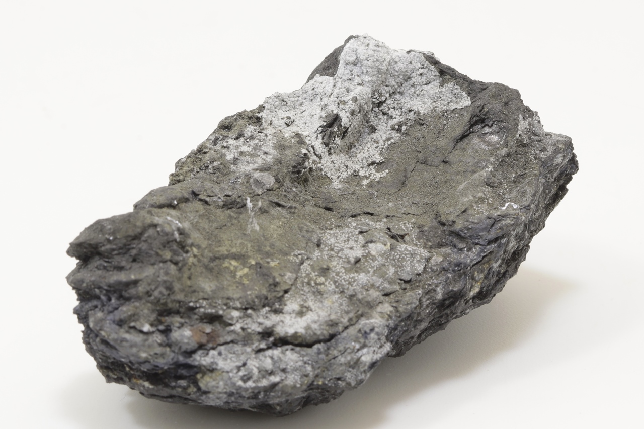 Brandholzite forms colorless, elongated tabular to foliated aggregates, which sit on a dark gray substrate rock. Many of these aggregates also grow together and strikingly resemble open scissors. This is a fine example of this mineral from the locality Pezinok, Slovakia.