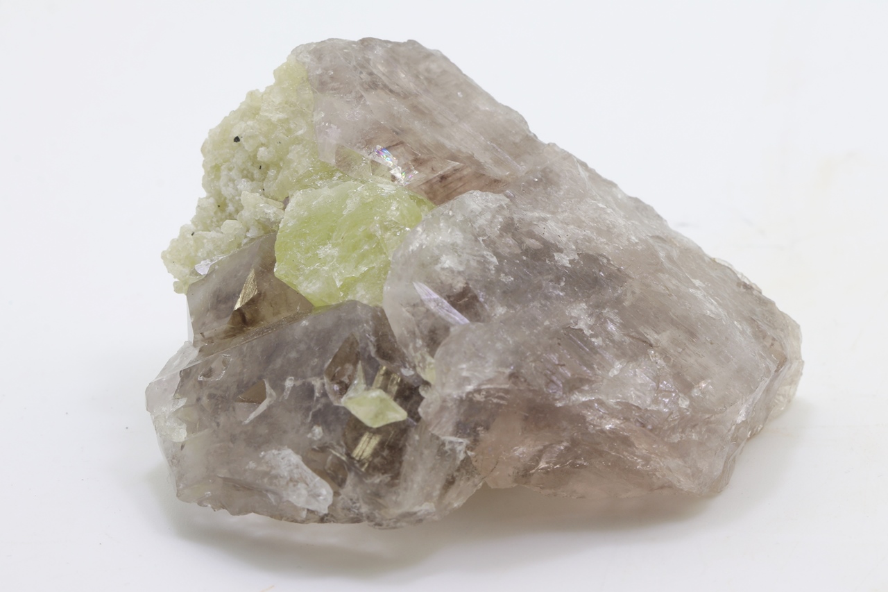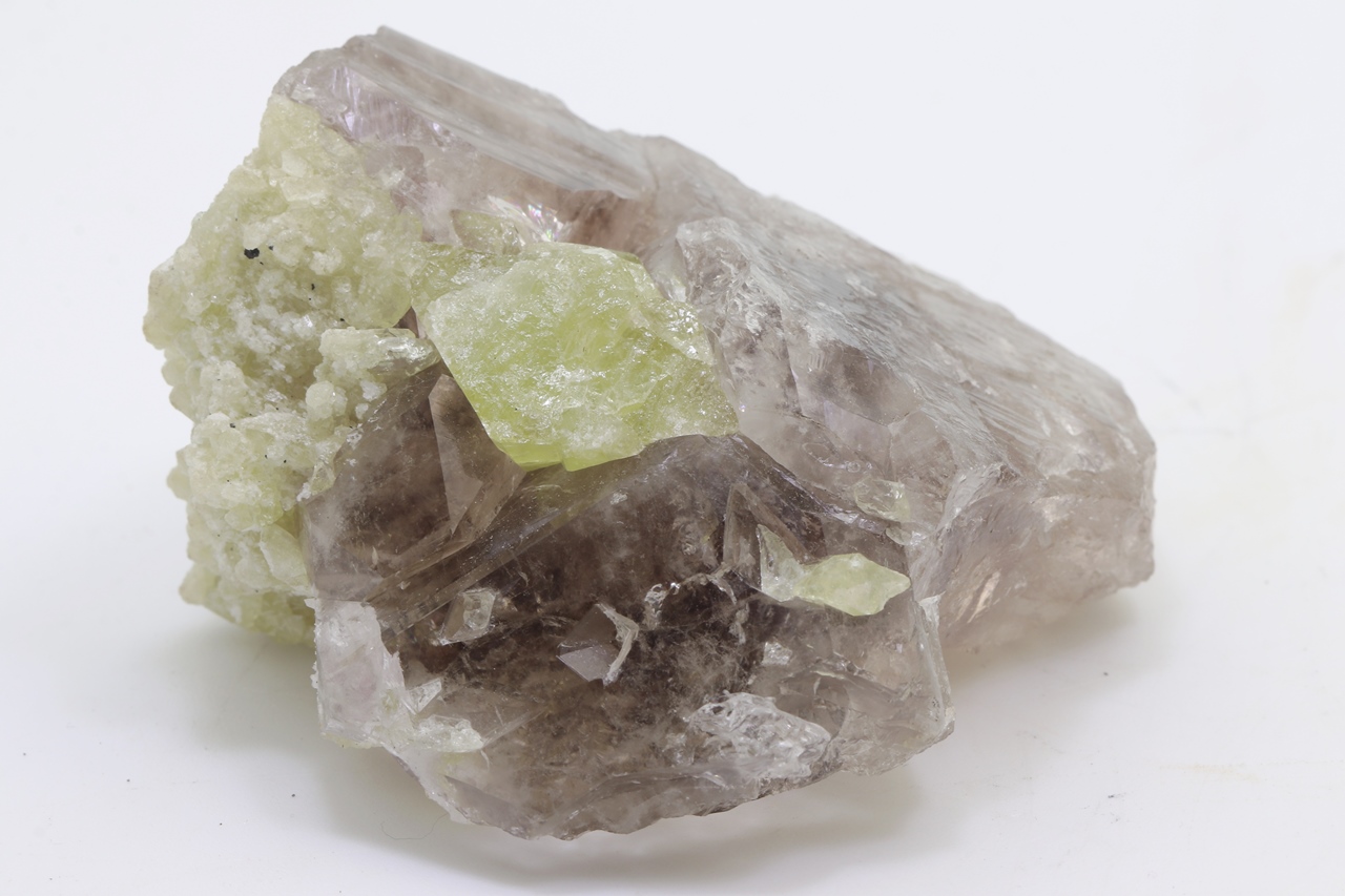 Poisonously green brazilianite crystals grown on brownish matrix.