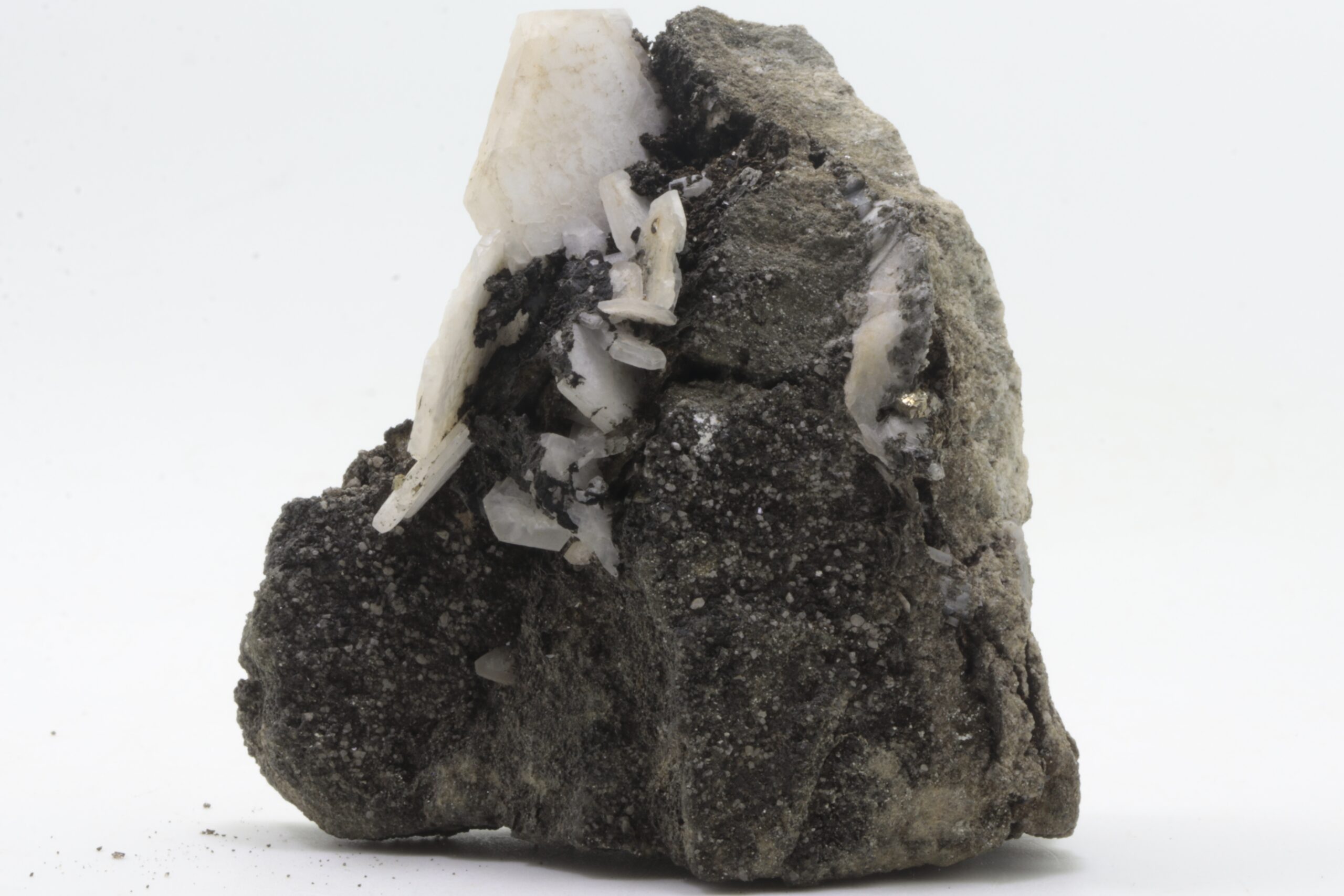 Paper Calcite, pseudo-hexagonal tabular crystals of calcite of Alpine paragenesis up to 28 x 15 mm, sit on pararule sprinkled with chlorite.