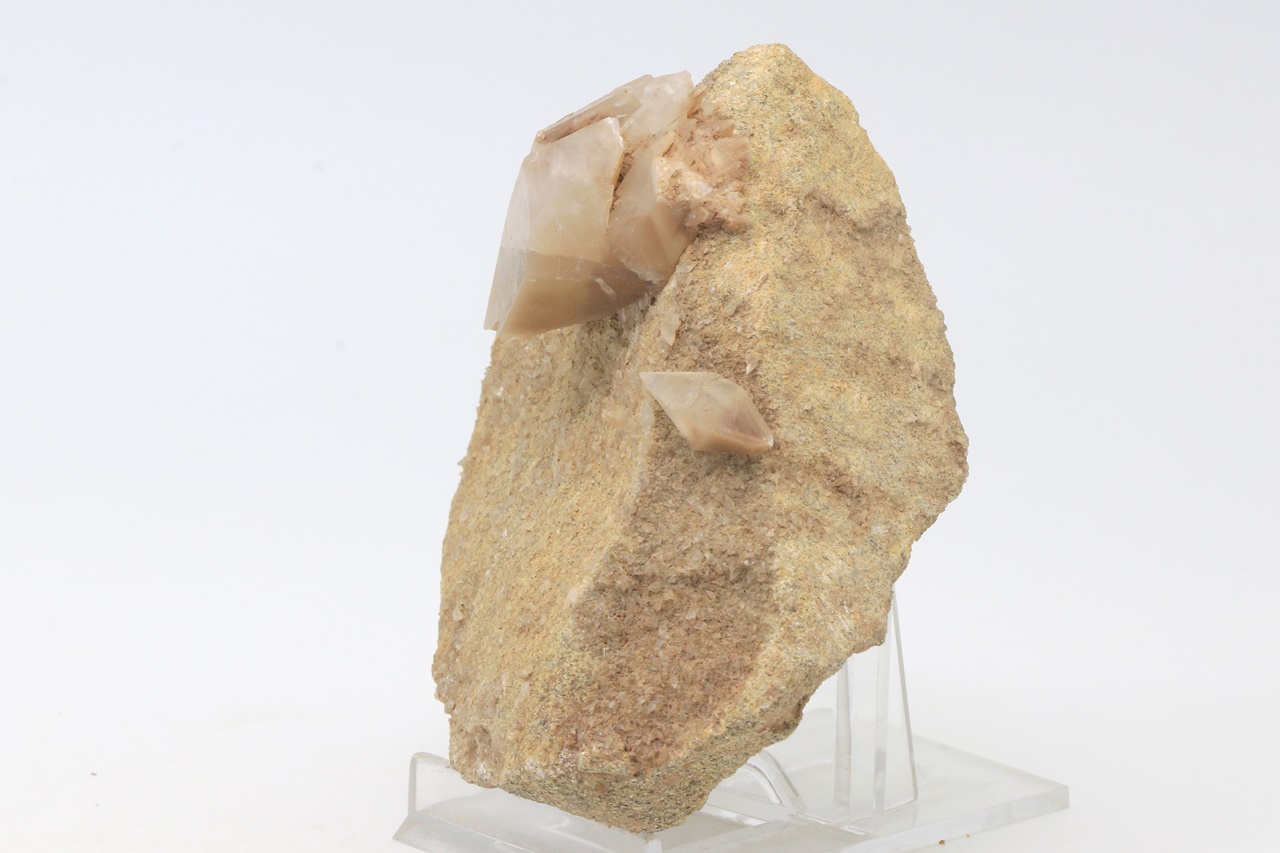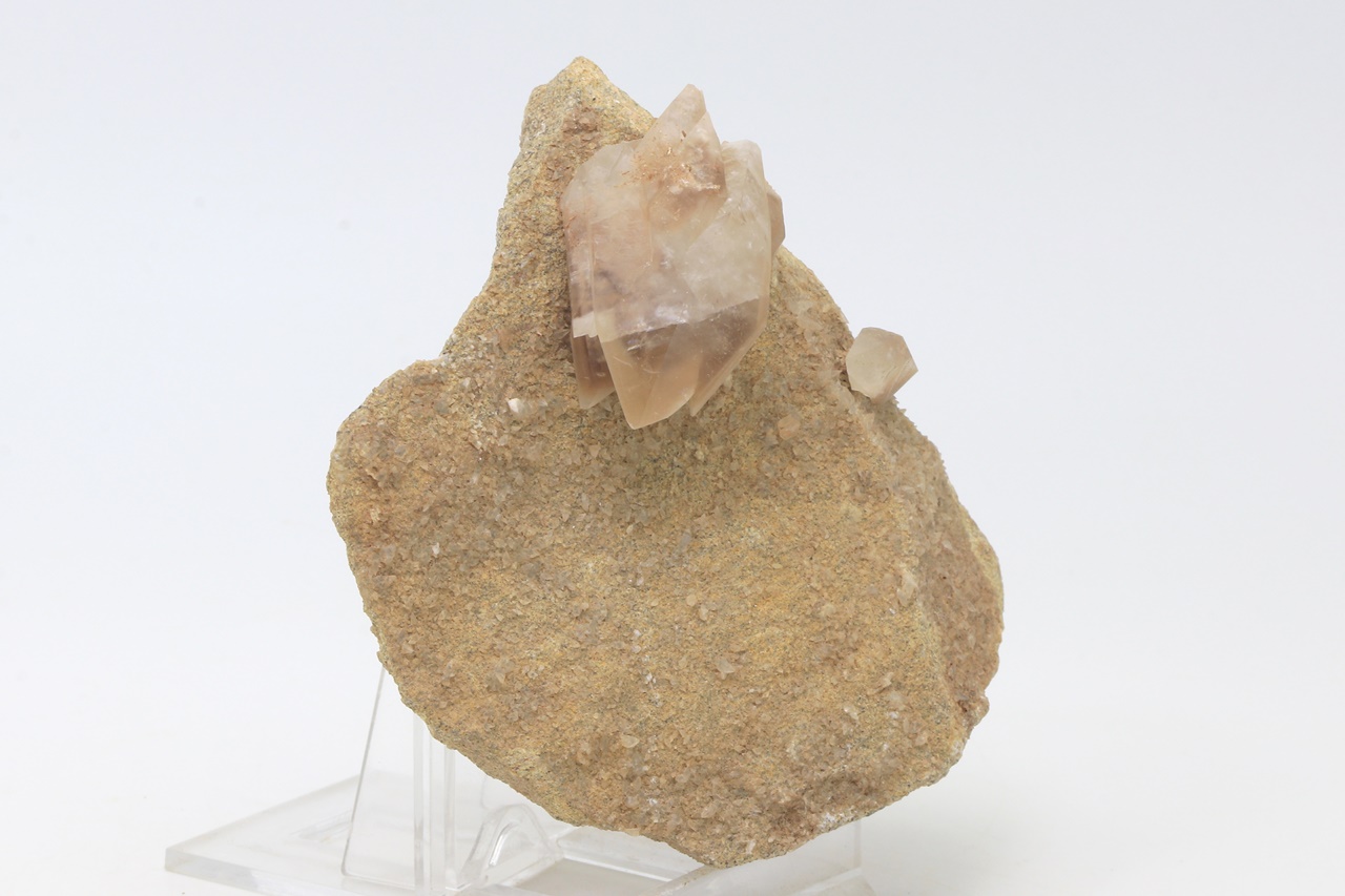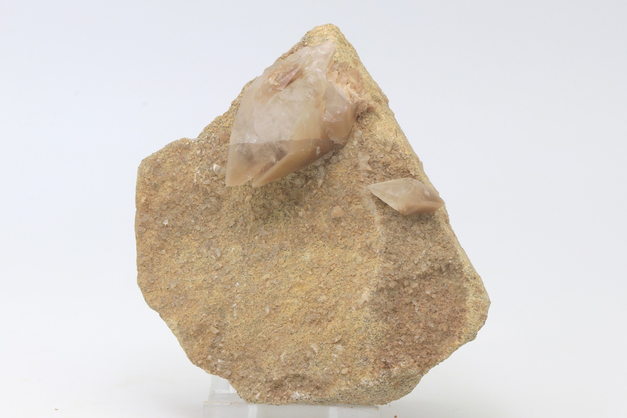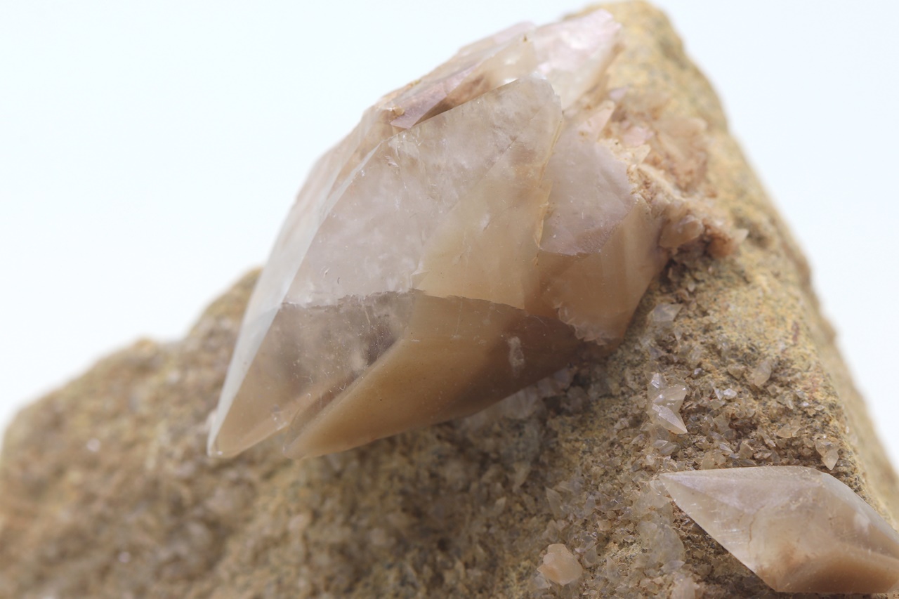 A four-centimeter large hypoparallel cluster of scalenohedral calcite crystals.