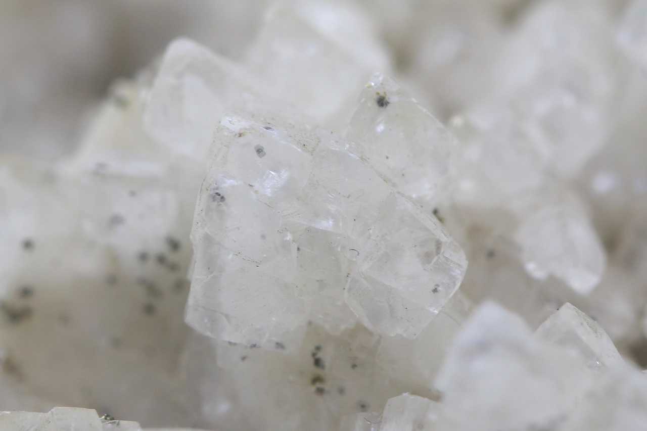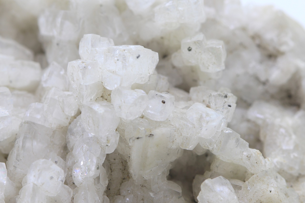 Druse of white, hypoparallel-grown scalenohedral calcite crystals.