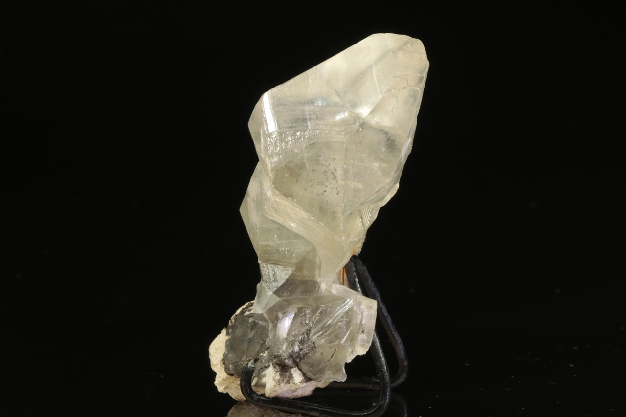 A clear scalenohedral crystal of calcite. Unfortunately, the tip of the crystal is chipped.
