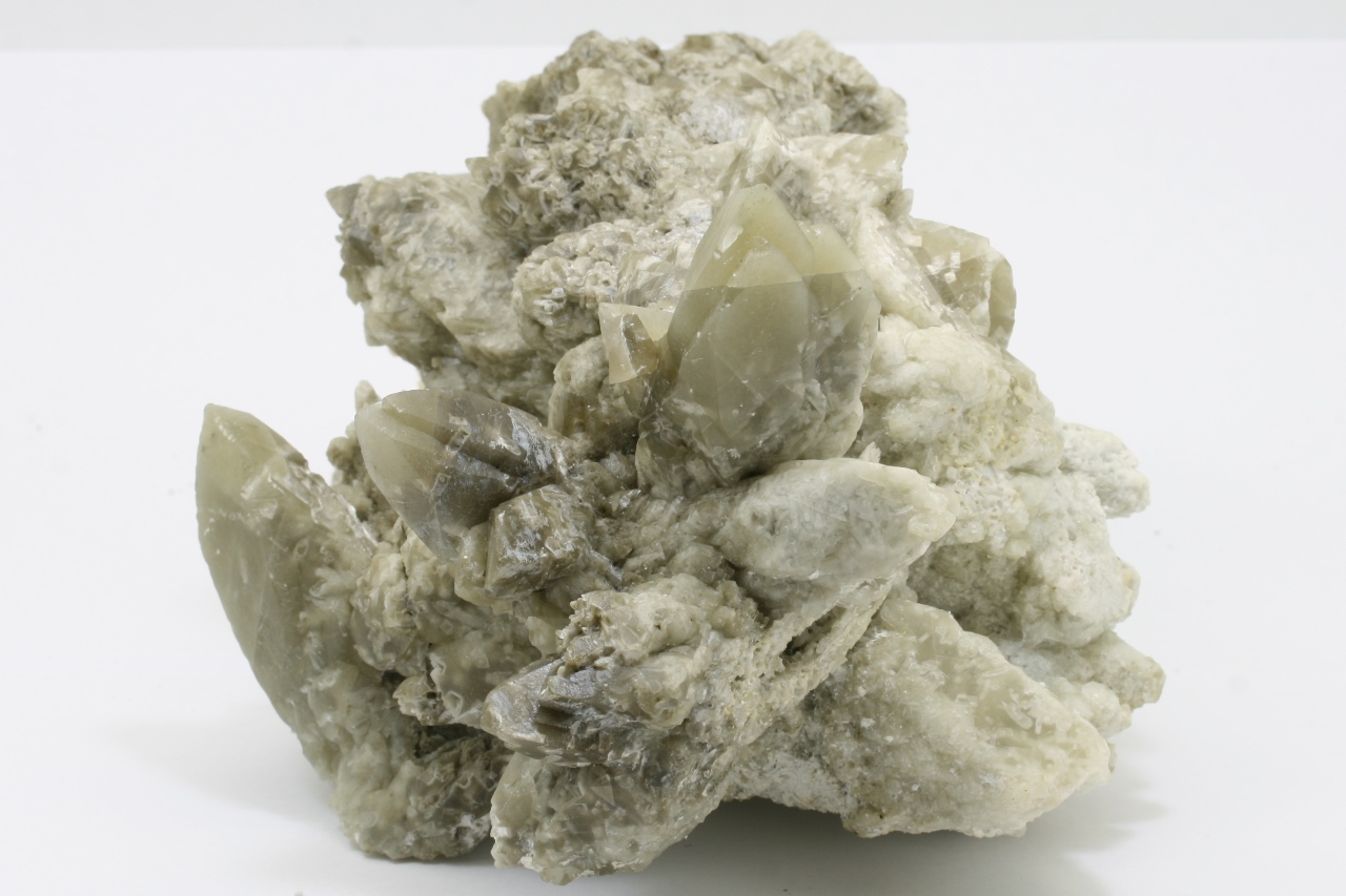 Sample of calcite with several well-developed crystals up to 7 cm in size.