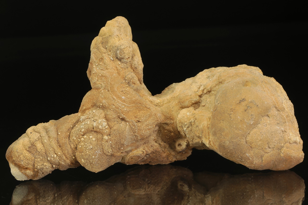 Elongated calcite concretion found in 1996 in the dumps of a former brickyard.