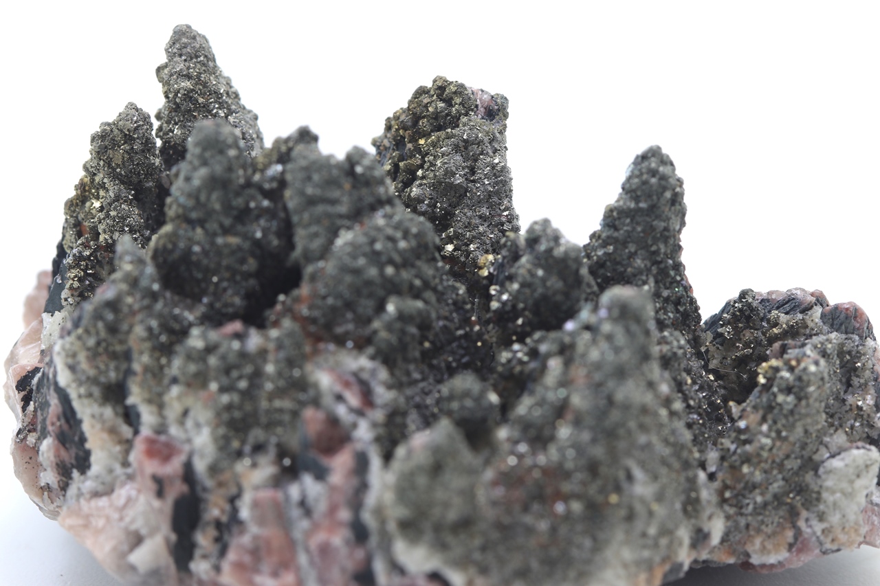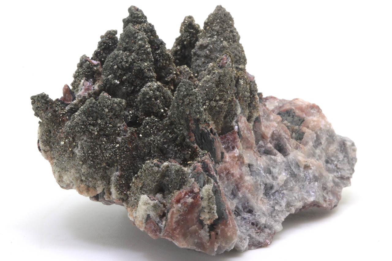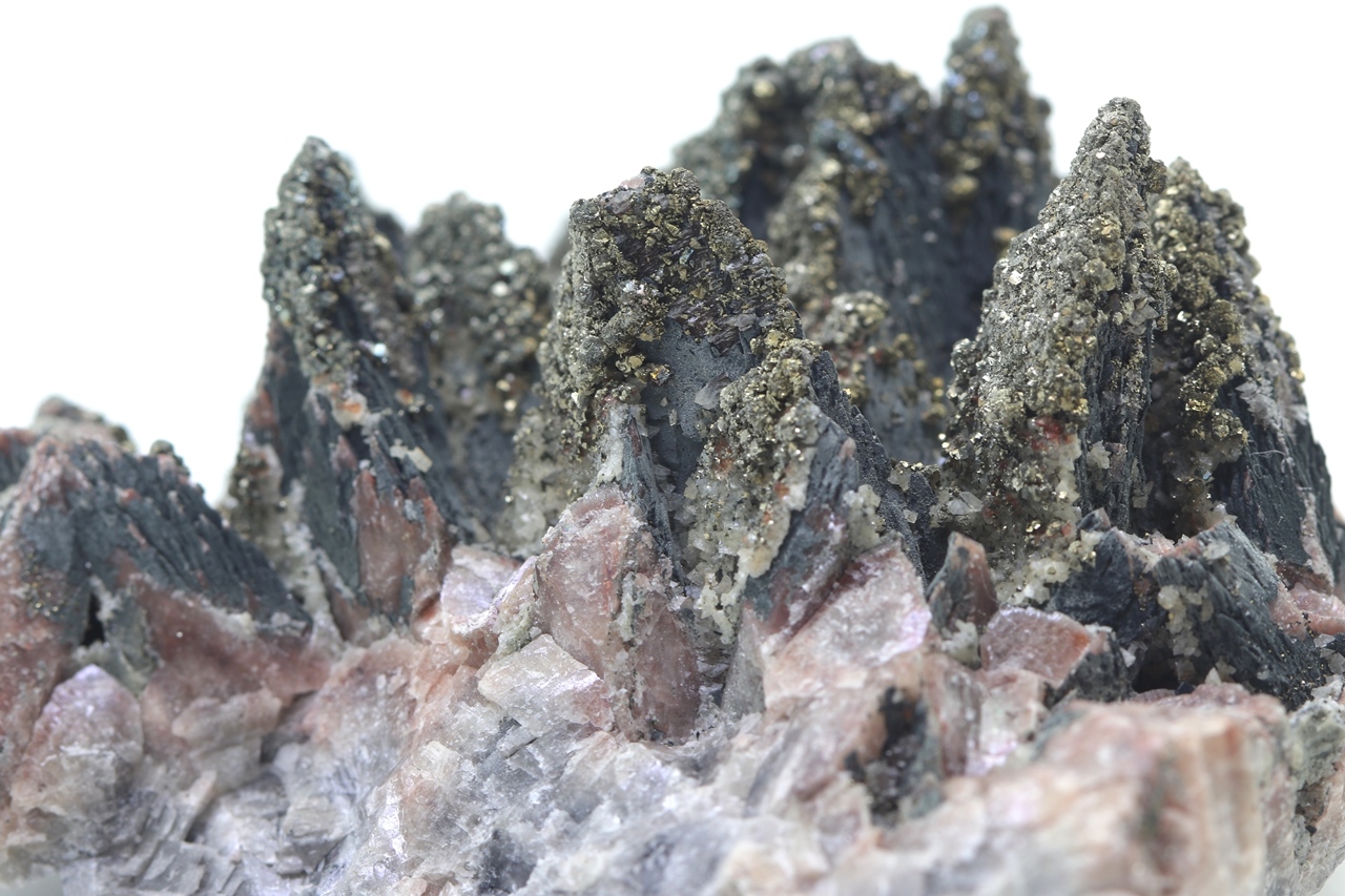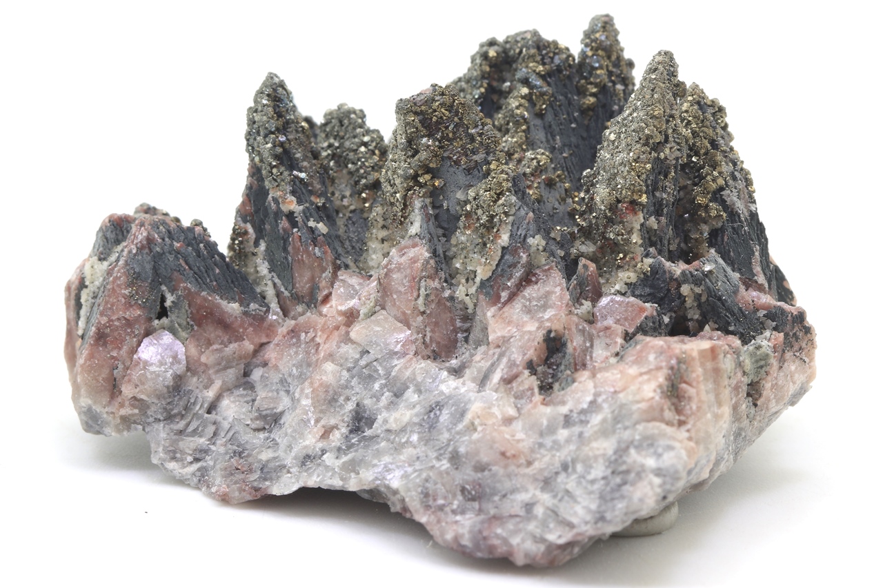 Notable sample of calcite overgrown with pyrite resembles the shields of high mountains and is beautiful from all sides.